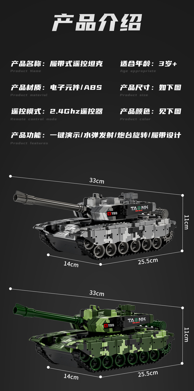 ![]() | Dual remote control 13 channels [t90 green + watch] can launch bullets + turret rotation + mobile phone control | Deluxe three batteries | ¥78.0 / ≈ 940 ₽ | 9548 | 5951331285768 | |