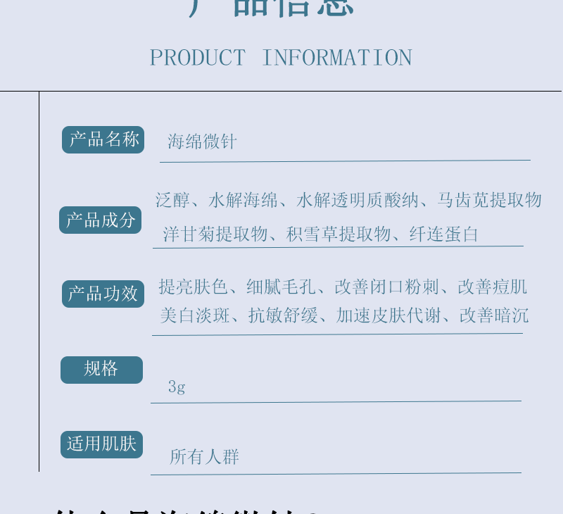![]() | Sponge microneedle 3g (blue diamond) | ¥10.8 / ≈ 130 ₽ | 52640 | 6116052826982 | |