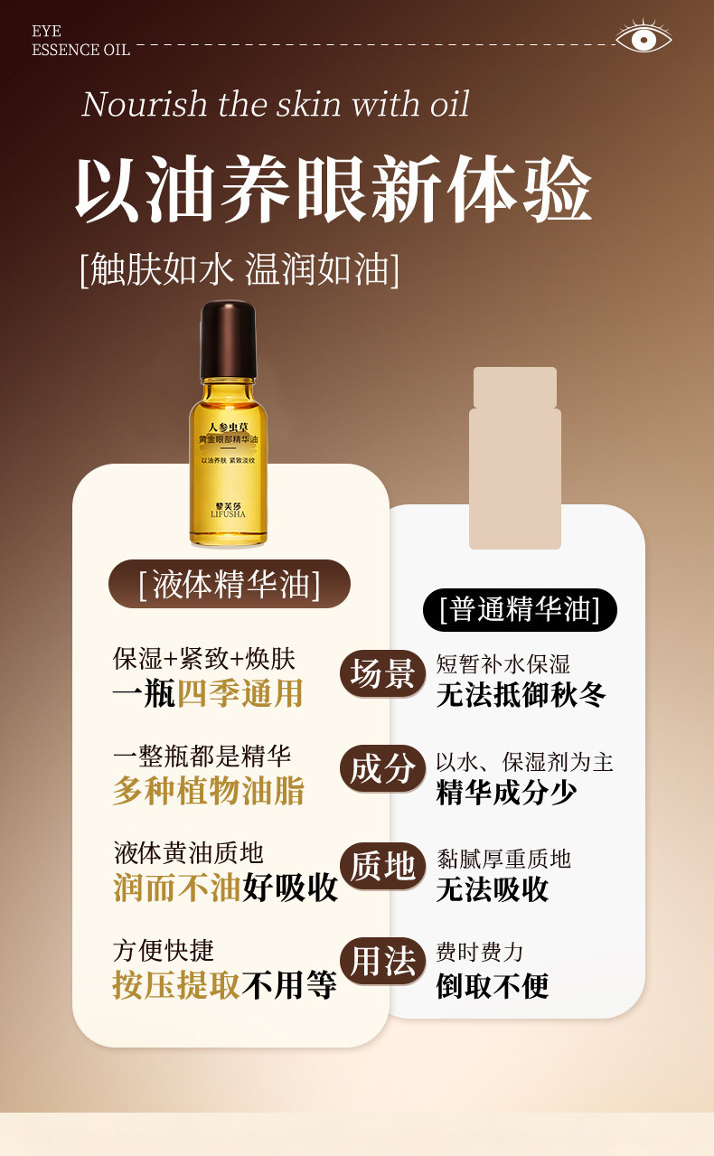 ![]() | Levsa ginseng cordyceps gold eye essence oil 20ml | 3шт: ¥1.00 | 999980366 | 5947609576061 |