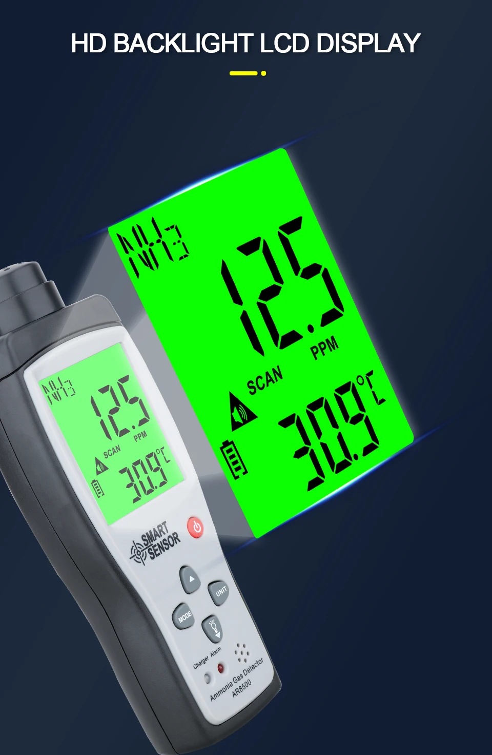 Датчик аммиака Xima Ar8500 Цифровой дисплей Устройство для обнаружения газа Для курятника и свинарника