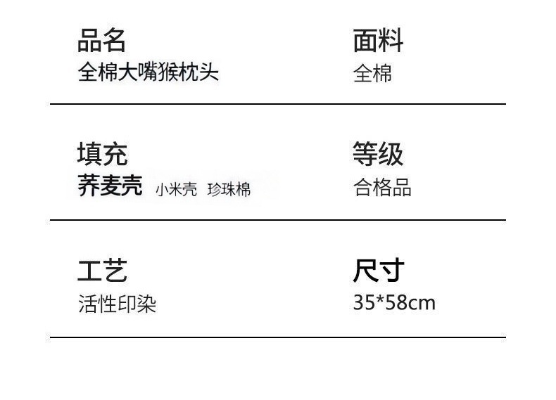 ![]() | No. 5 monkey (100 cotton) | Buckwheat hull + moxa velvet pillow core (without pillowcase) | ¥15.9 / ≈ 192 ₽ | 10000 | 5953321181872 | |