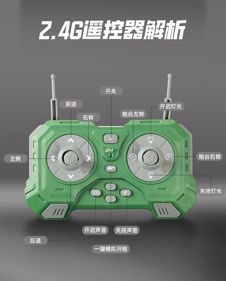 ![]() | 9-channel tiger type [green] remote control turret rotation + sound and light effects | [single battery standard configuration] | ¥45.8 / ≈ 552 ₽ | 9548 | 5950187708348 | |