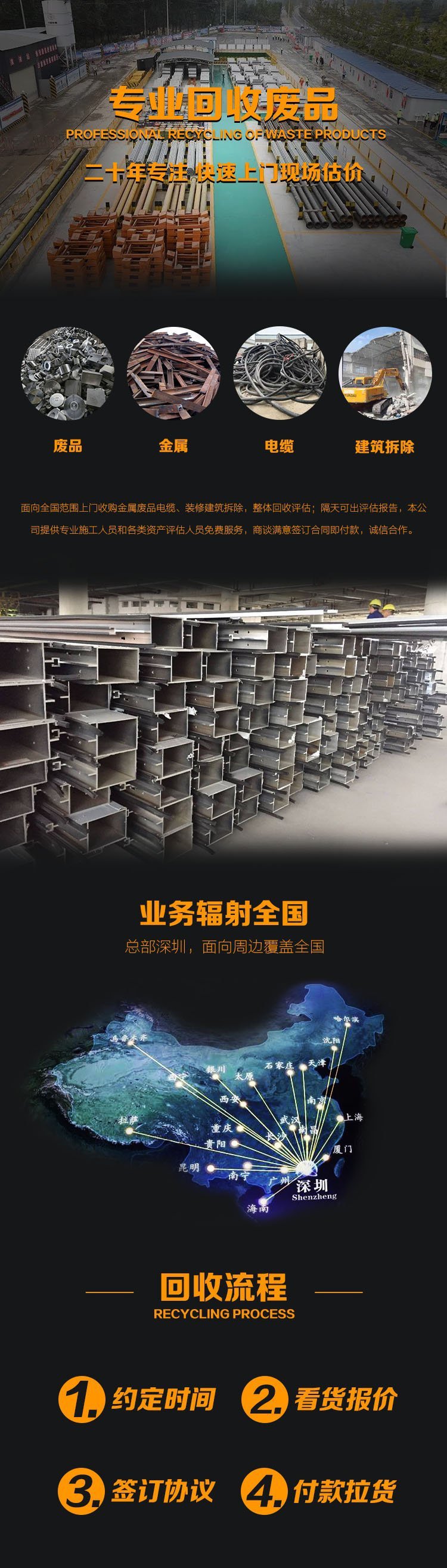 五金废料回收:工厂废料、建筑废料、各种铜、铝、不锈钢、合金、钢铁、铅、锌、钼、锡、钛等。