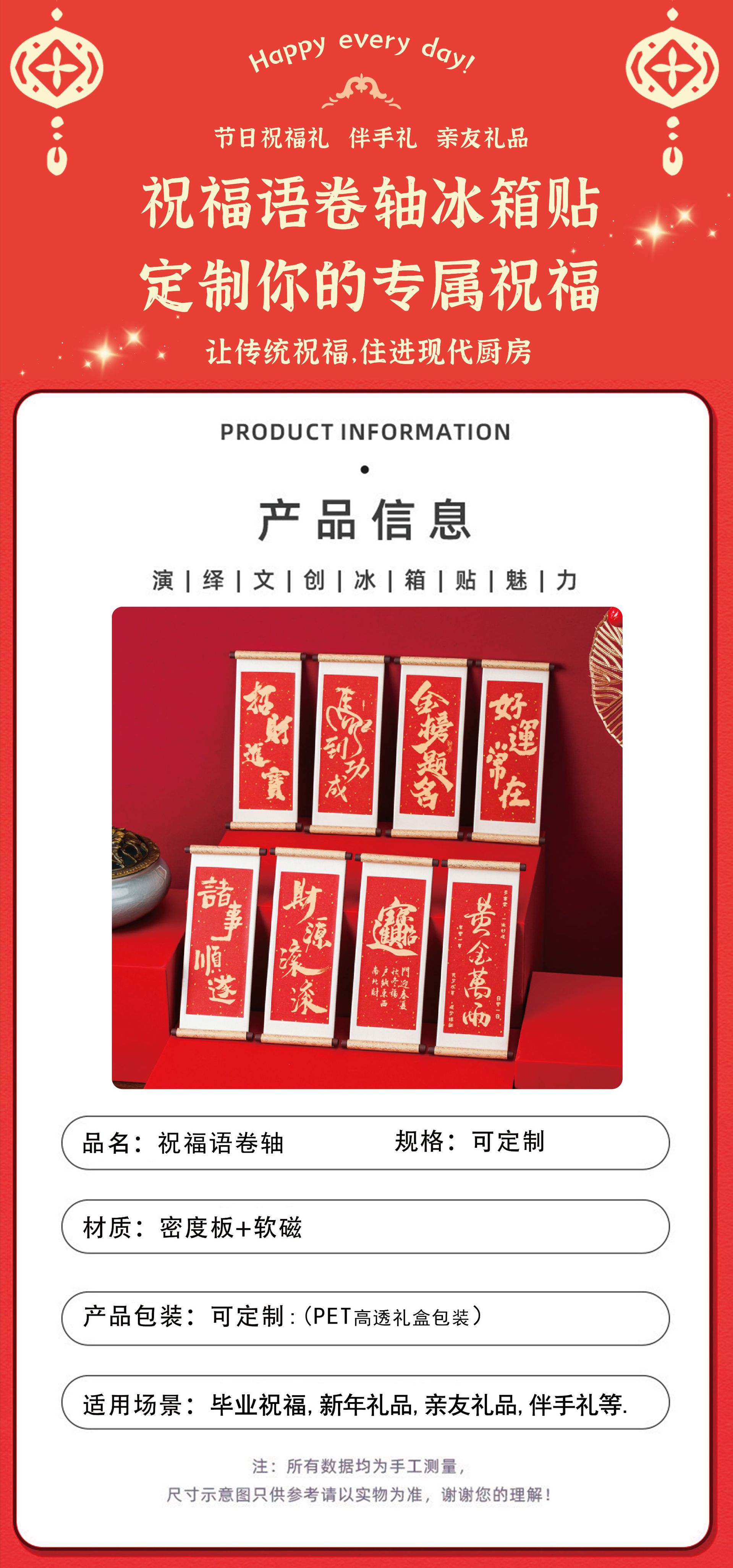 Серия благословений деревянные свитки магнитные наклейки для холодильника Культурные креативные подарки Деревянные магнитные сувениры Музейные подарки