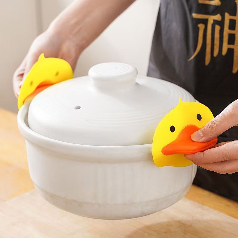 маленькие желтые утки утепленные перчатки утолщенные нескользящие кухонные крышки и посуды силиконовый анти-ожог термоизоляционный коврик анти-ожог зажим