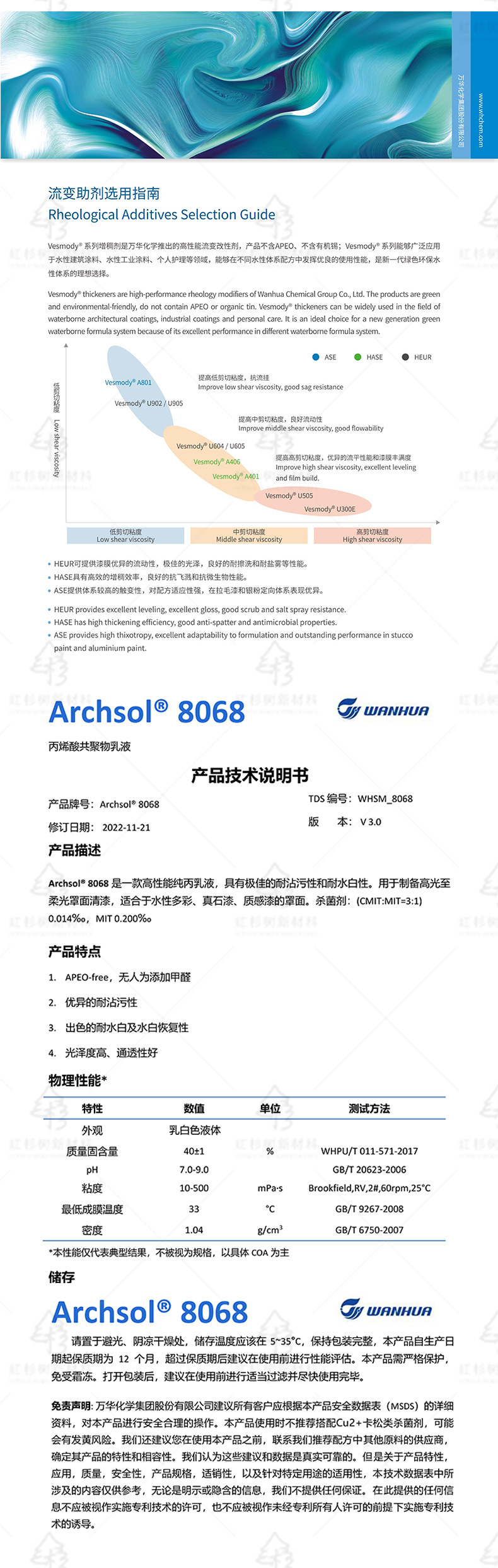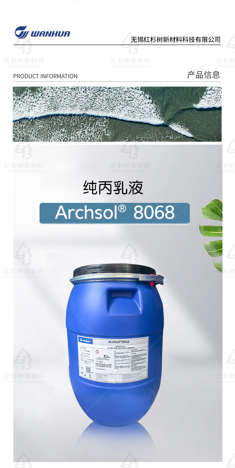 Wanhua Chemical Archsol 8068 чистая акриловая эмульсия высокопроизводительная чистая акриловая эмульсия мягкий светлый верхний слой лак доступен