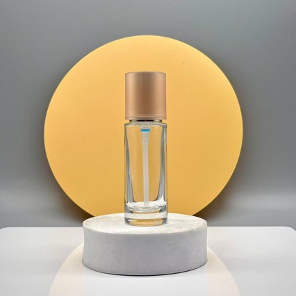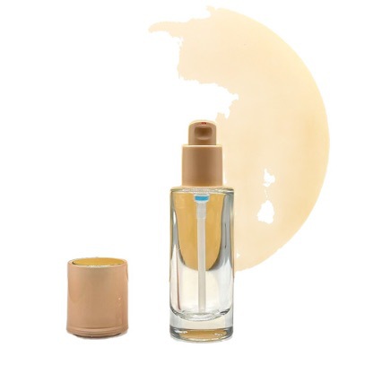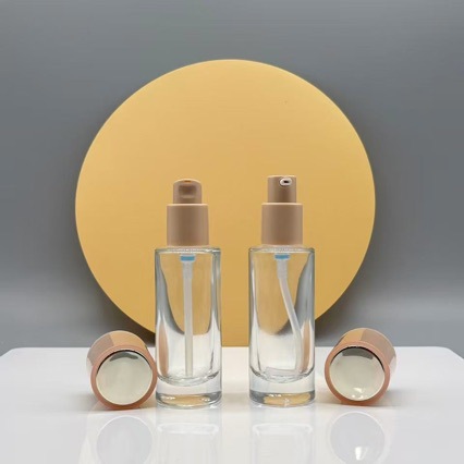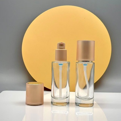Готовый к производству 30мл прозрачная стеклянная бутылка для лосьона с прямой круглой розовой внешней оберткой, пресс-бутылка, под-бутылка, партия
