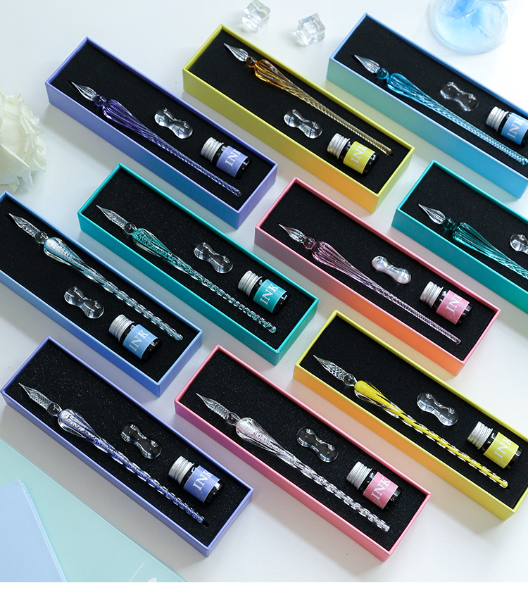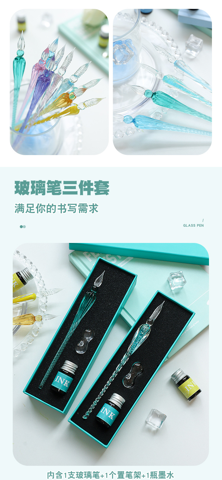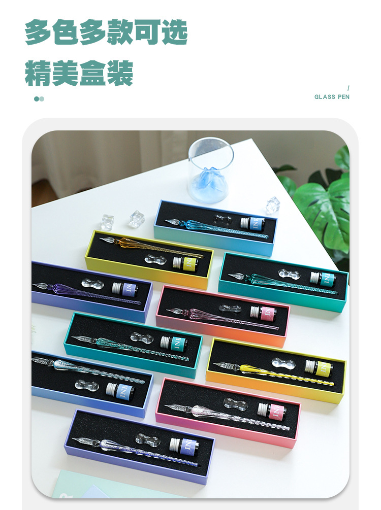 Набор стеклянных ручек макарон, подписная ручка, кристаллическая, студент, перьевая ручка, канцелярский подарочный набор