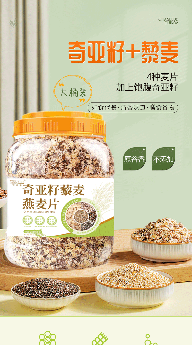 ![]() | Chia seed quinoa oatmeal 1000g | 1шт: ¥10.10, 120шт: ¥8.50, 3000шт: ¥8.30 | 103079 | 6114676223102 |