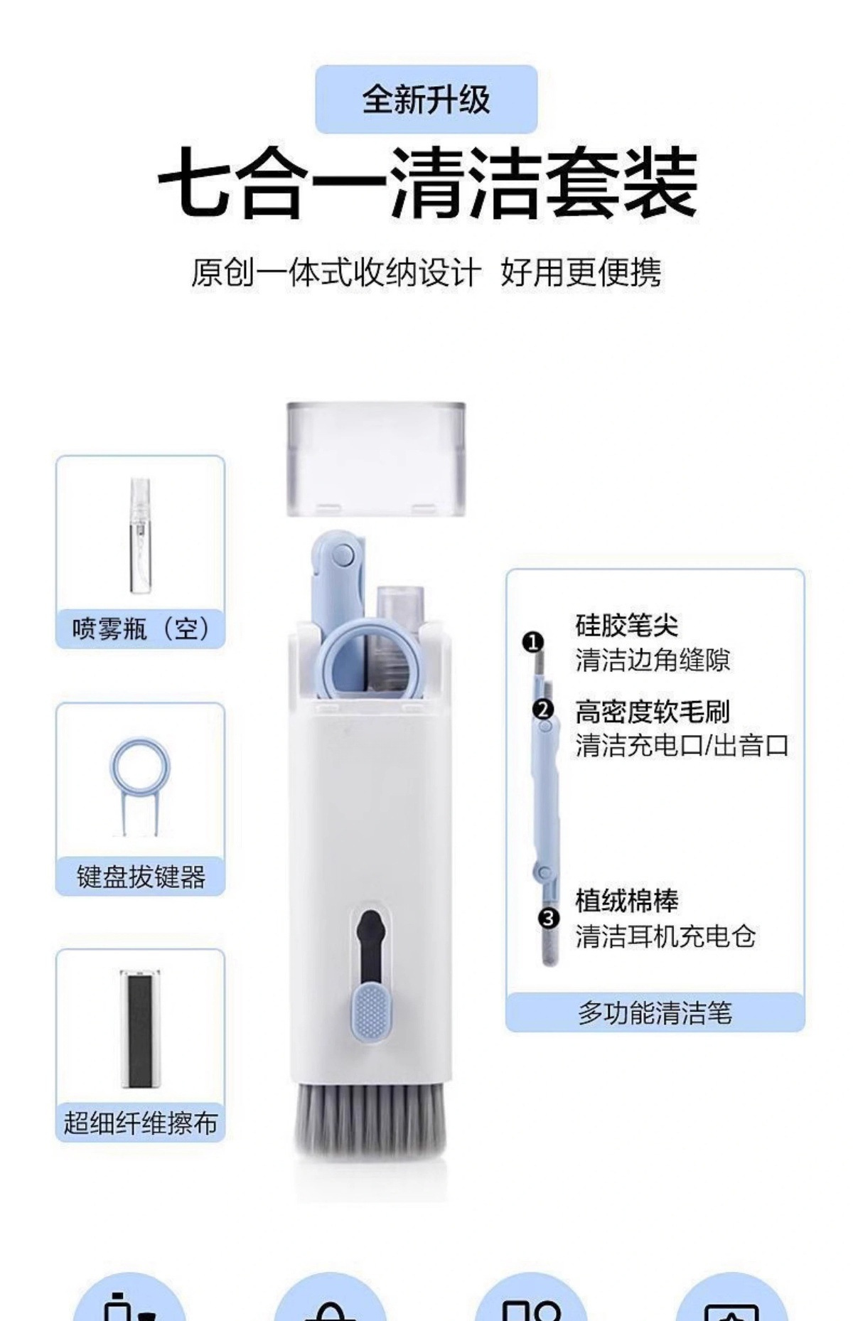 Семь в одном, щетка для чистки клавиатуры и Bluetooth наушников, многофункциональная щетка для удаления пыли с экрана ноутбука и мобильного телефона