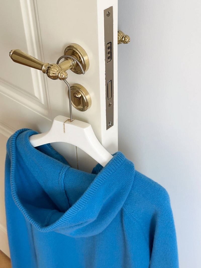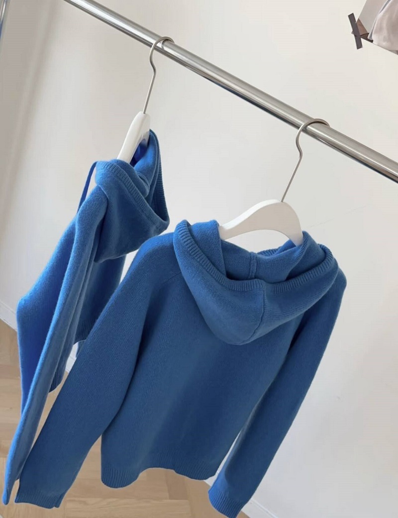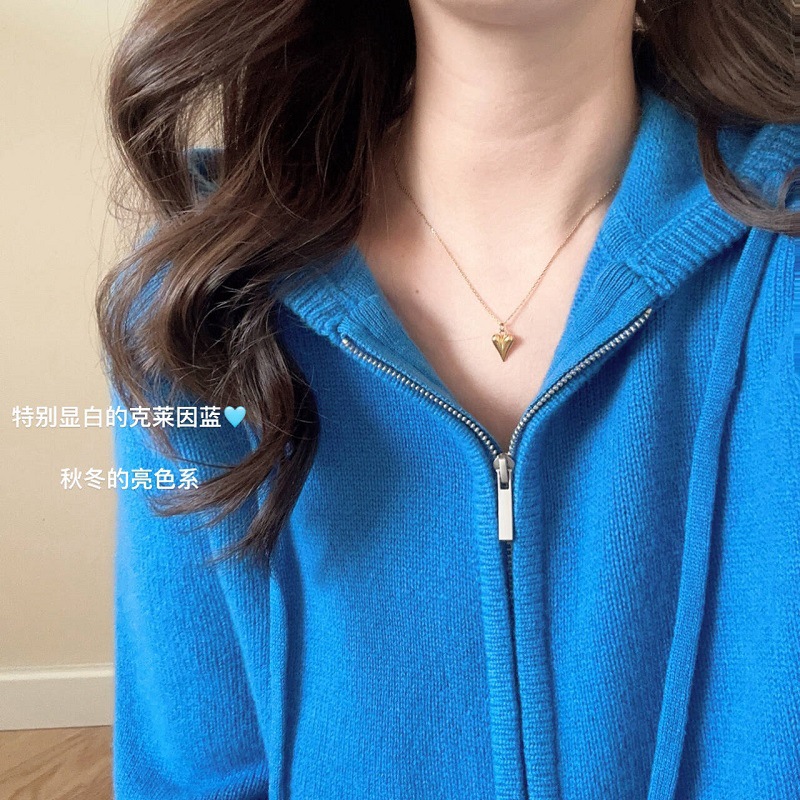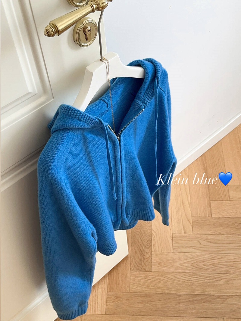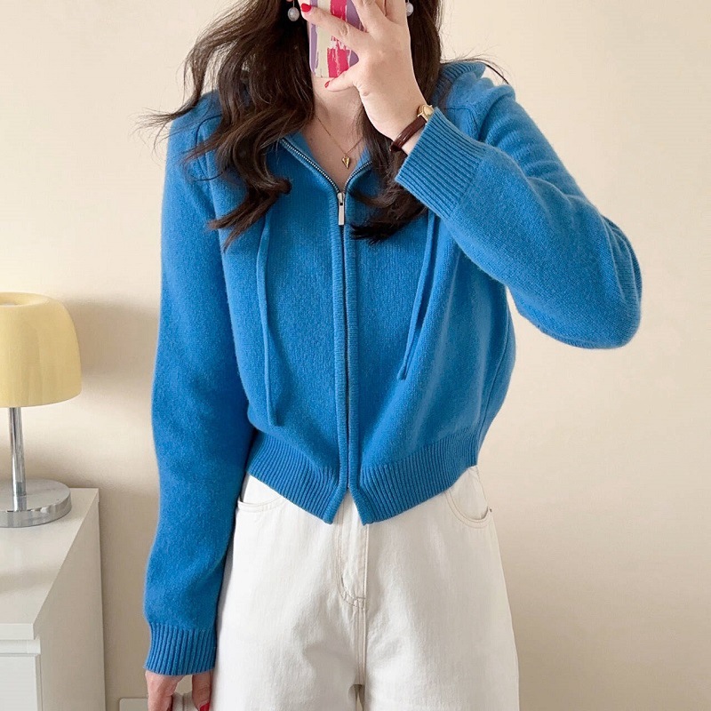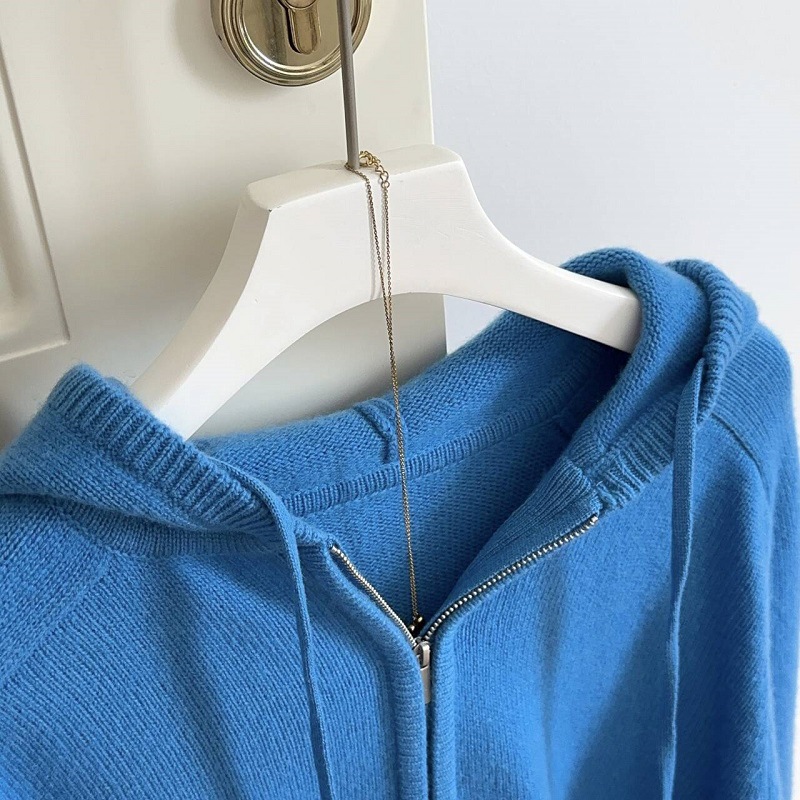 Зимний мягкий и восковый белящий свитер-кардиган с капюшоном из тонкой овечьей шерсти, окрашенный в клейн-блю, для женщин, толстый, новый