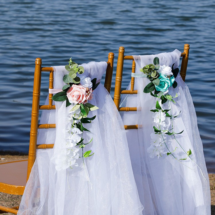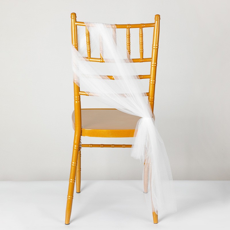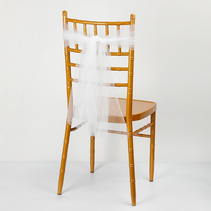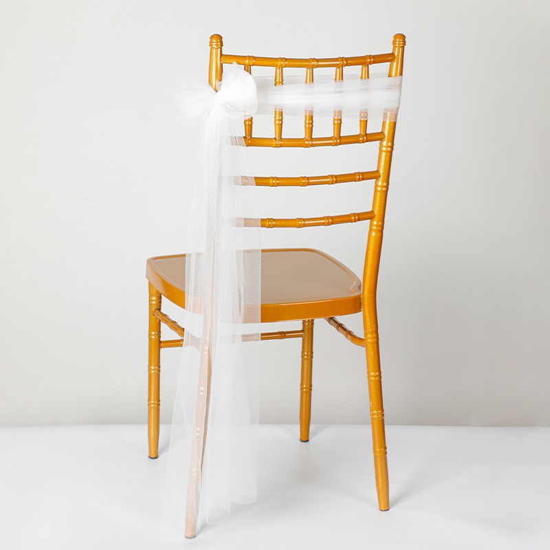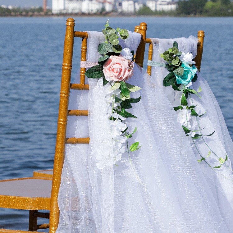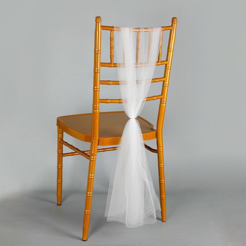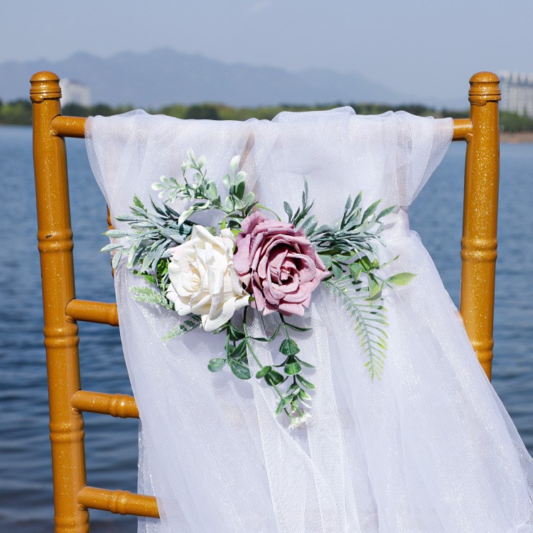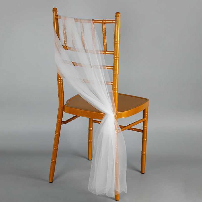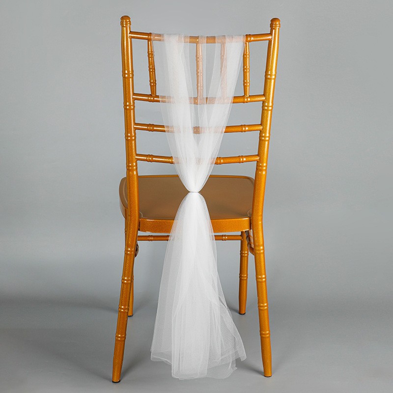 Индивидуальный декор спинки стула для свадебного банкета на открытом воздухе, сетчатые цветы с легкой тканью