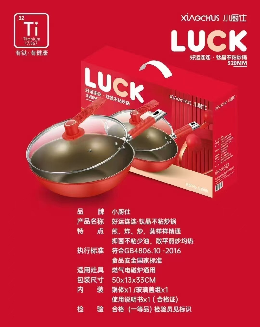 Сковорода Little Chef Good Luck из титана с кристаллом, 32 см, в цветной коробке, подарок для ювелирного мероприятия, групповая покупка