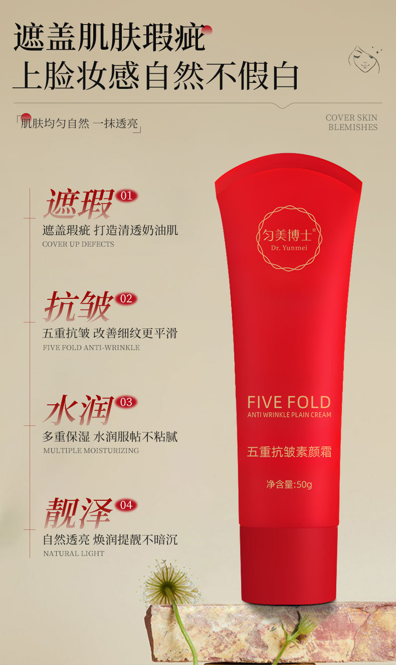 Крем для макияжа против морщин Dr. Yunmei, питает кожу, нюдовый крем, изолирует, маскирует, осветляет тон кожи, увлажняет 50г