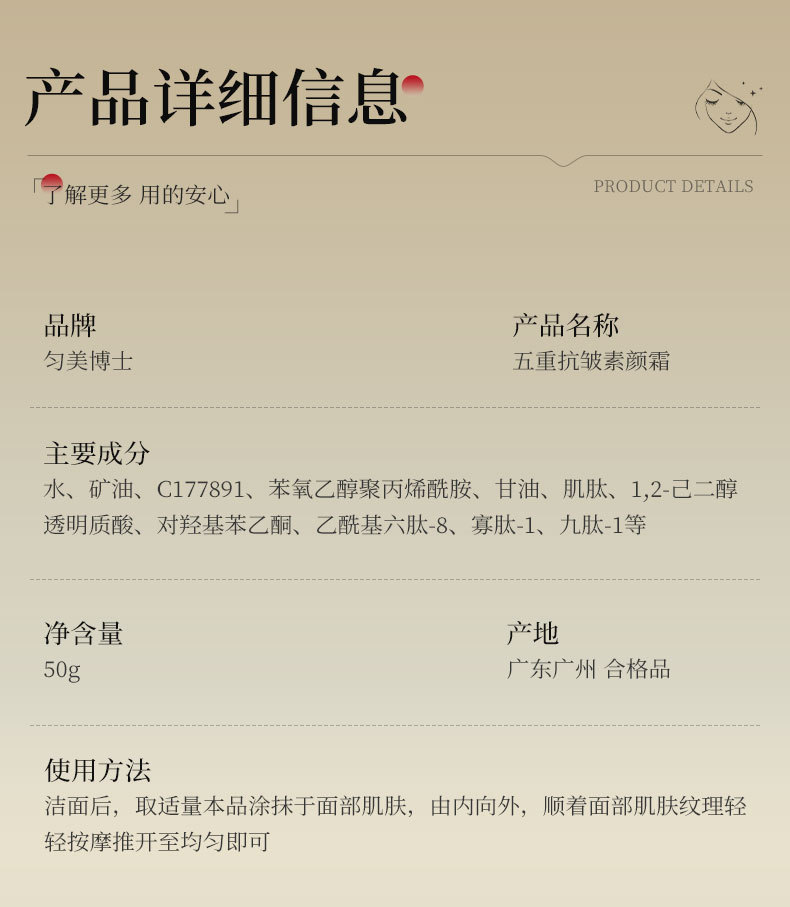 ![]() | Five-fold anti-wrinkle makeup cream | 50g | 1шт: ¥1.60, 600шт: ¥1.50, 6000шт: ¥1.40 | 10000 | 5950653501743 |
