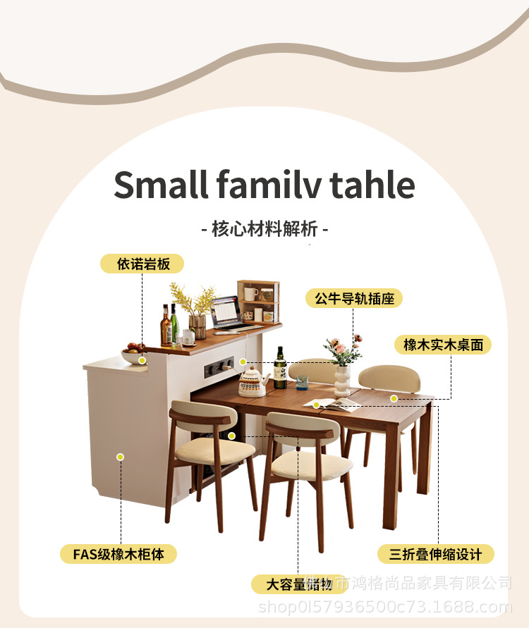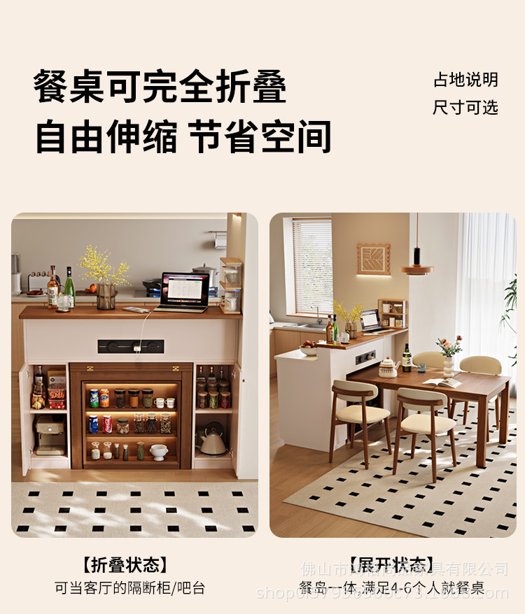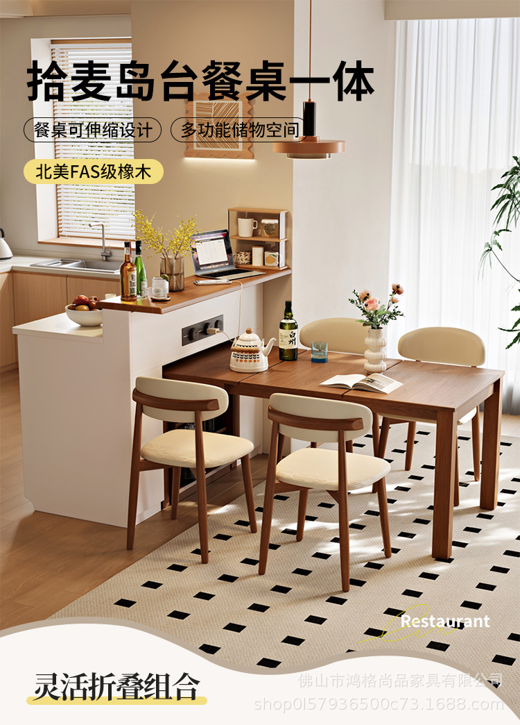 Многофункциональный островной обеденный стол из массива дерева, интегрированный, складной и выдвижной, для кухни, с перегородкой