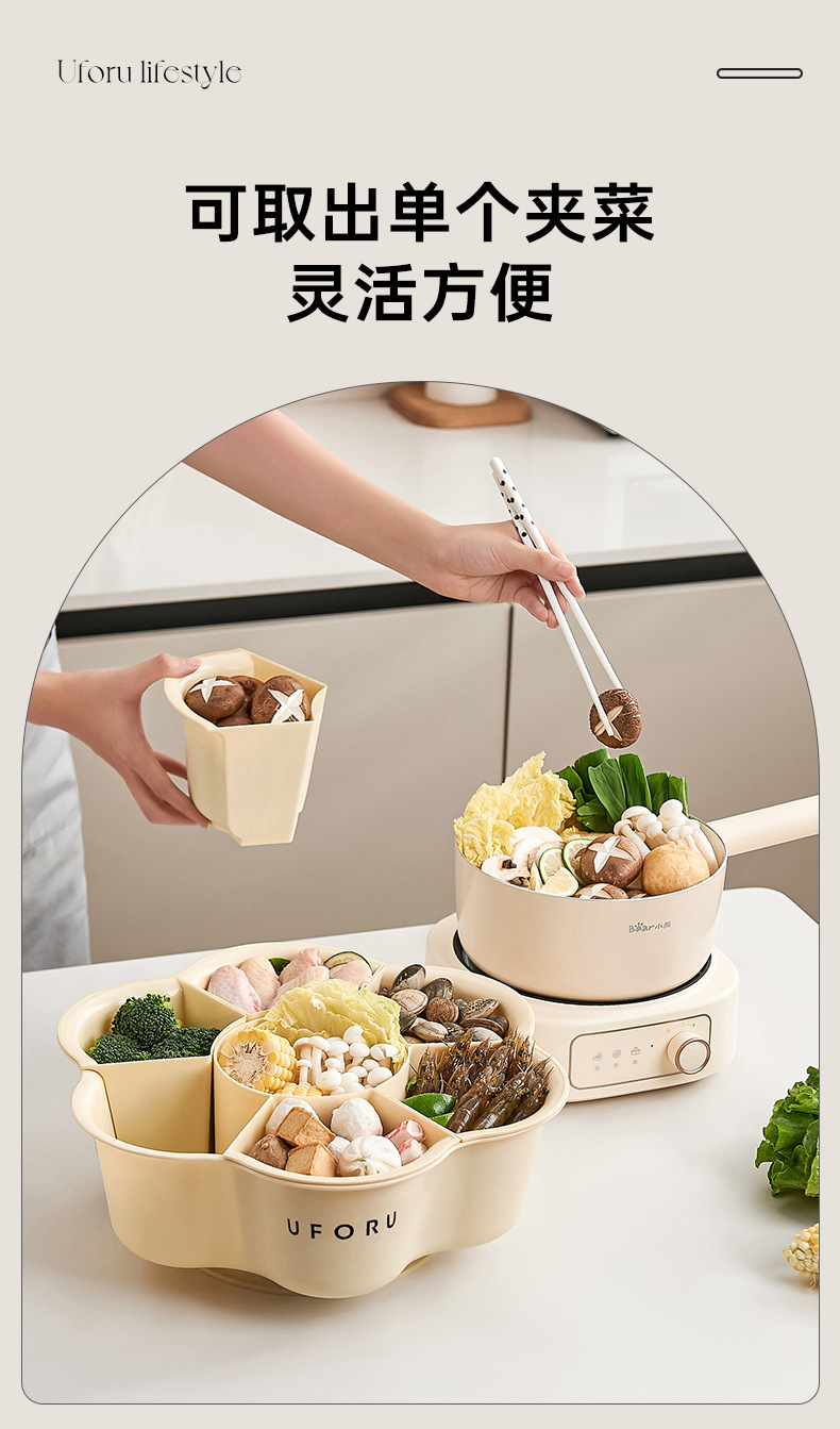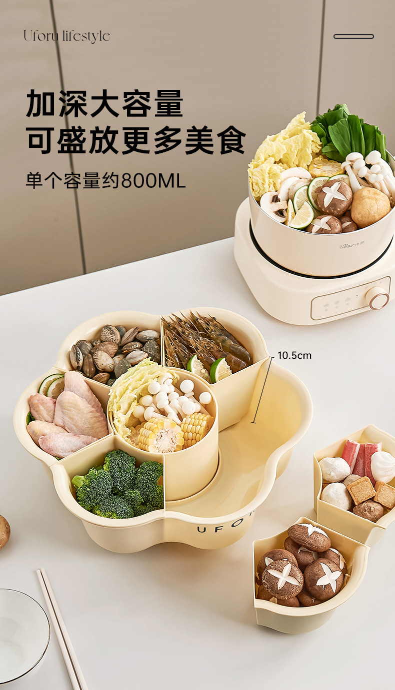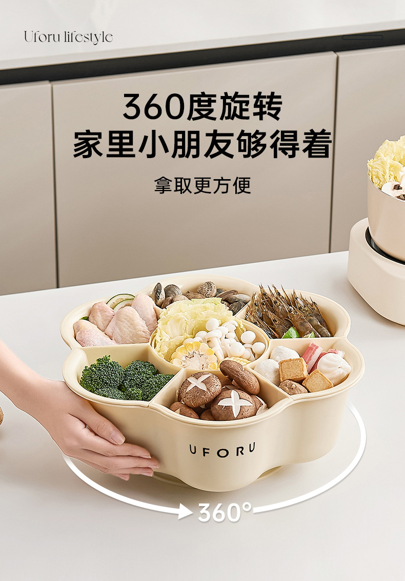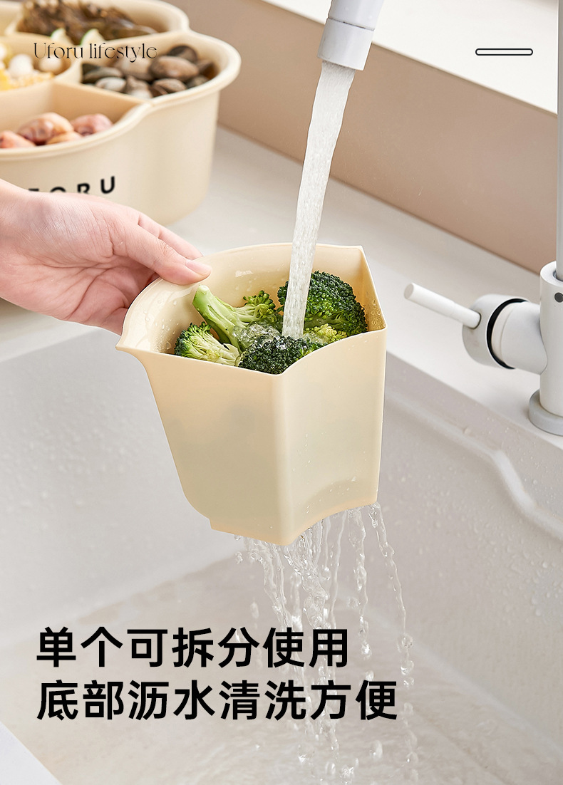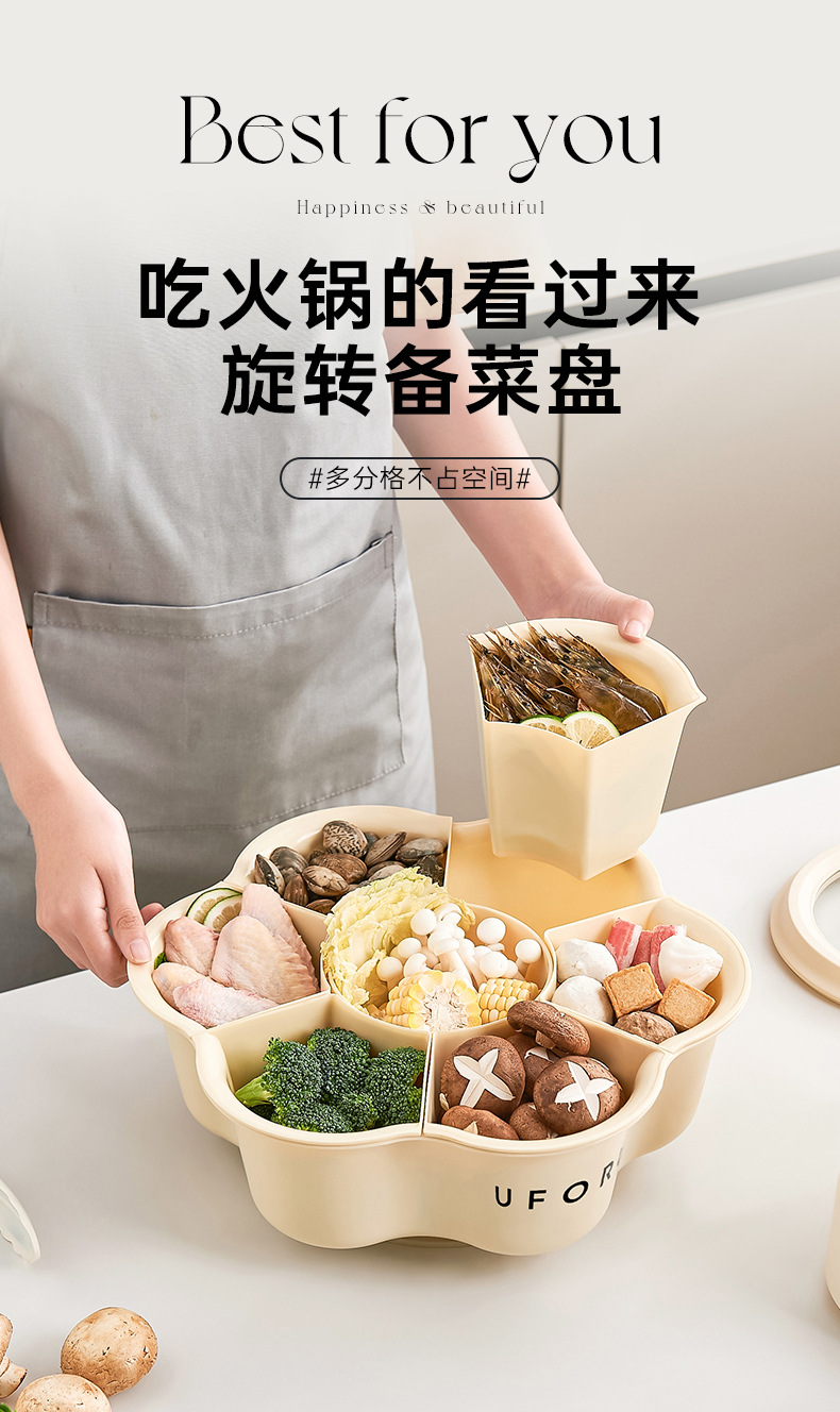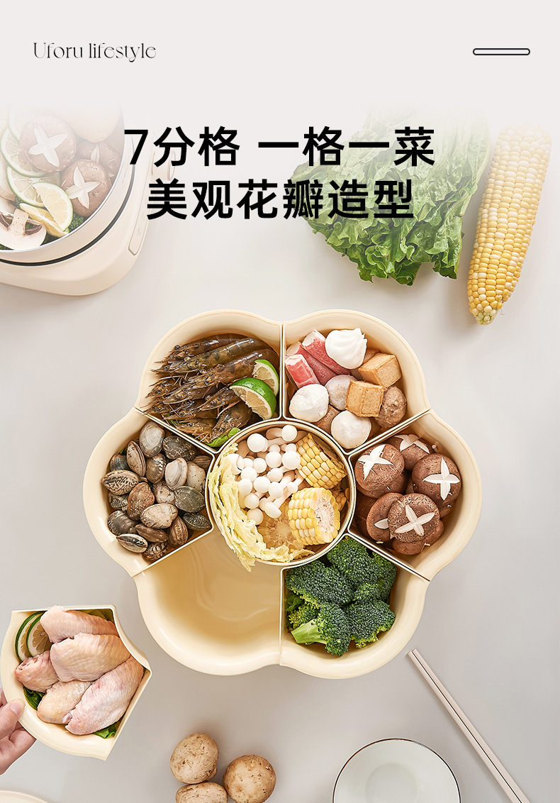 Поднос для приготовления пищи с горячим горшком, овощной поднос с семью отделениями, вращающаяся многофункциональная емкость большого объема для мытья овощей с дренажной корзиной