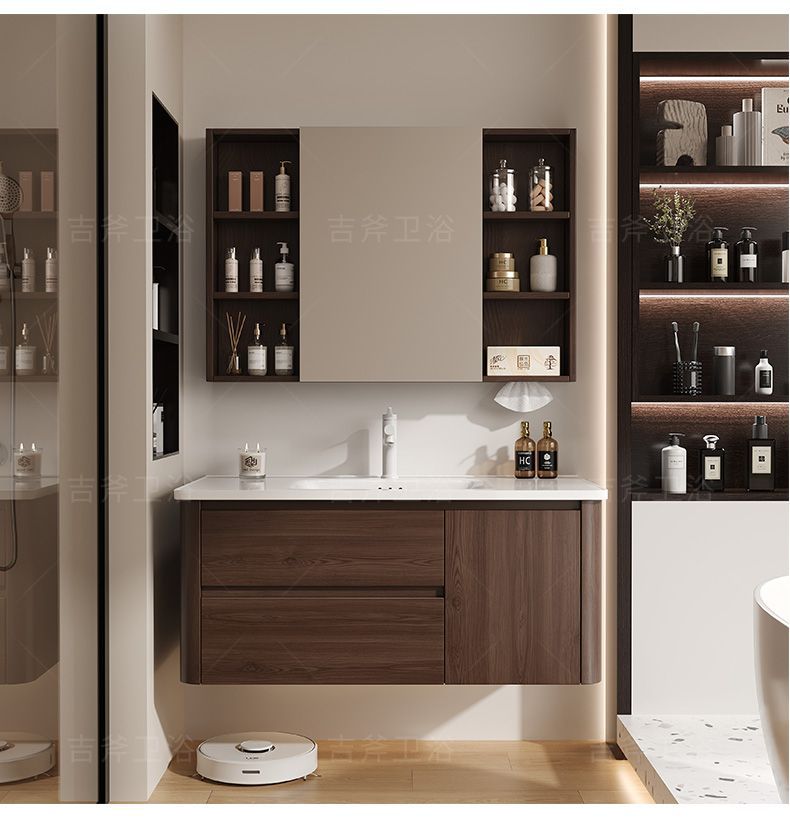 📦 | Honeycomb aluminum main cabinet + pull-out faucet + arc smart half-sealed mirror cabinet | Arc walnut 90cm one door and double drawers | ¥1235.0 / ≈ 14 896 ₽ | 587 | 5952031165020 | |