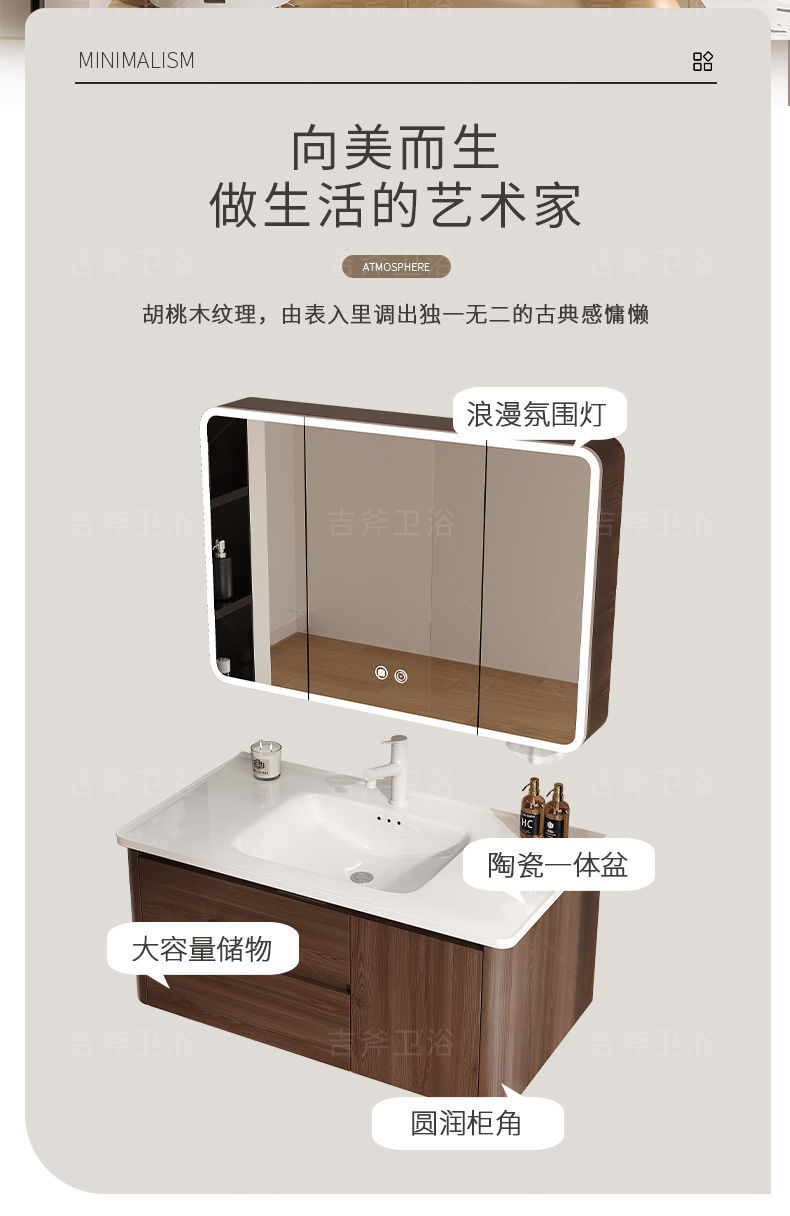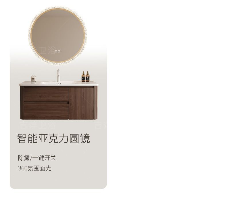 📦 | Honeycomb aluminum main cabinet + pull-out faucet + round smart mirror | Arc walnut 90cm one door and double drawers | ¥1019.0 / ≈ 12 291 ₽ | 586 | 5952031165021 | |