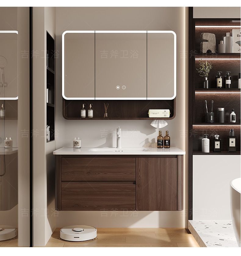📦 | Honeycomb aluminum main cabinet + pull-out faucet + arc smart fully enclosed mirror cabinet | Arc walnut 90cm one door and double drawers | ¥1235.0 / ≈ 14 896 ₽ | 593 | 5952031165018 | |