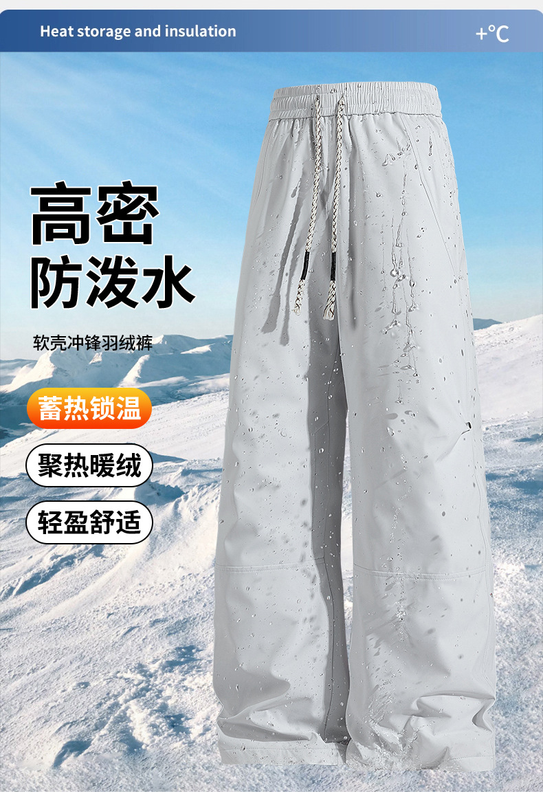Зимние штаны из пуха, водо- и ветрозащитные, прямые мягкие штаны, свободные повседневные длинные штаны, спортивные брюки для активного отдыха, мужские лыжные штаны
