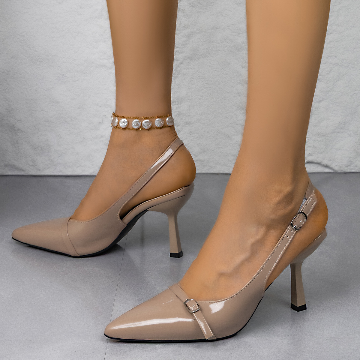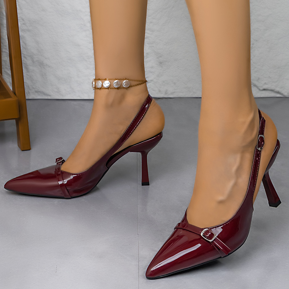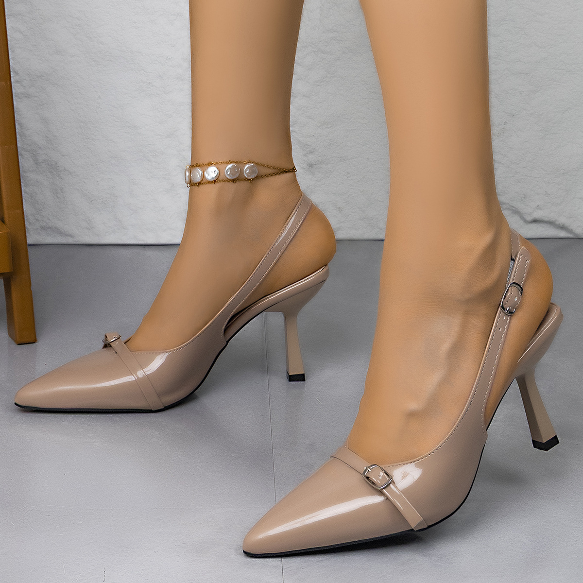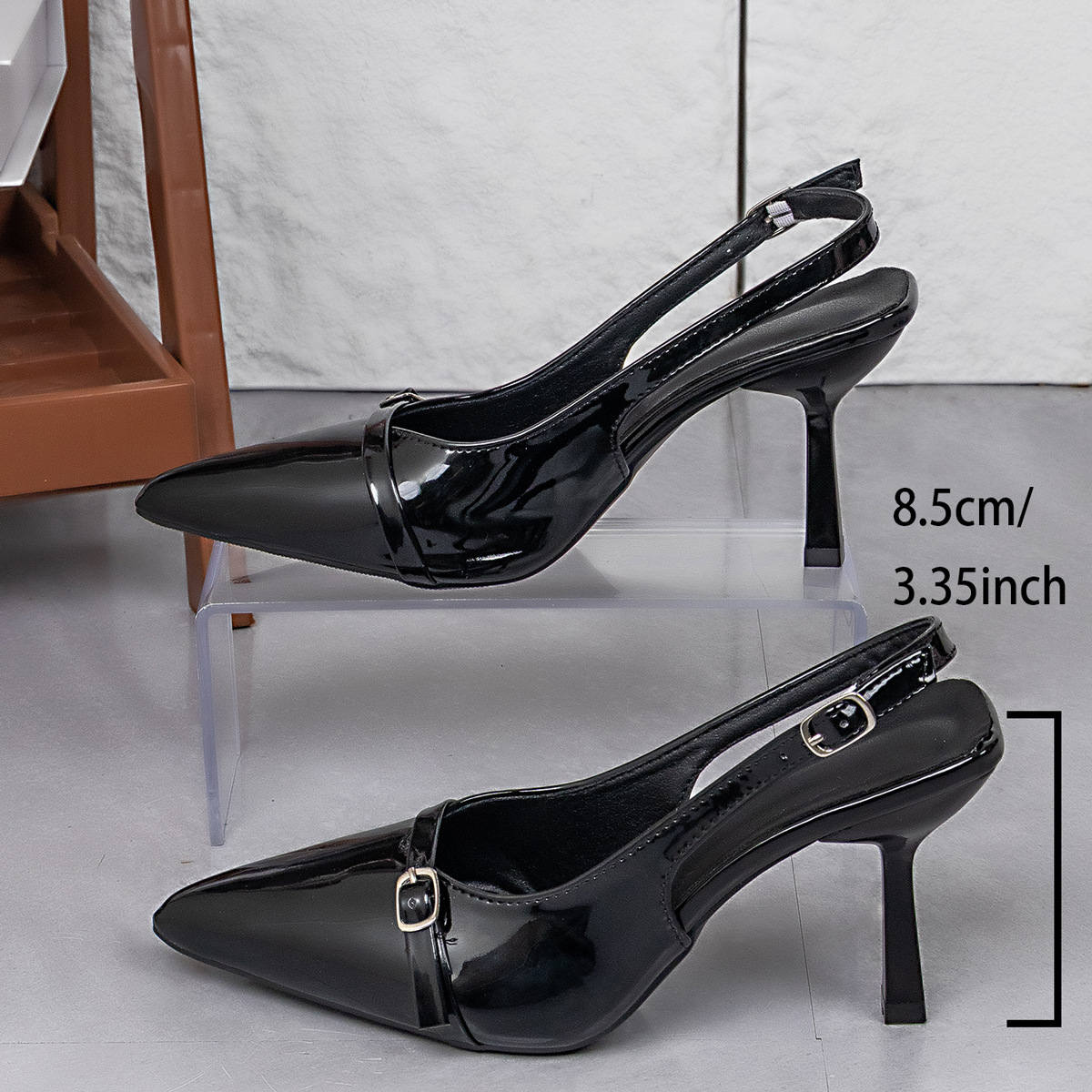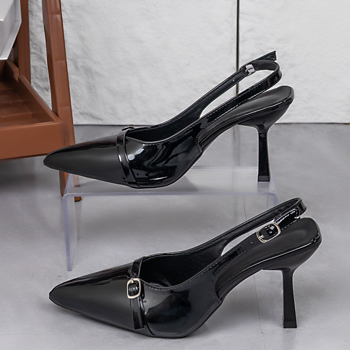 2025 Осень Новый Модный Лакированный Кожаный Туфли На Высоком Каблуке С Открытым Носком И Беззадним Дизайном Женские Туфли На Каблуке