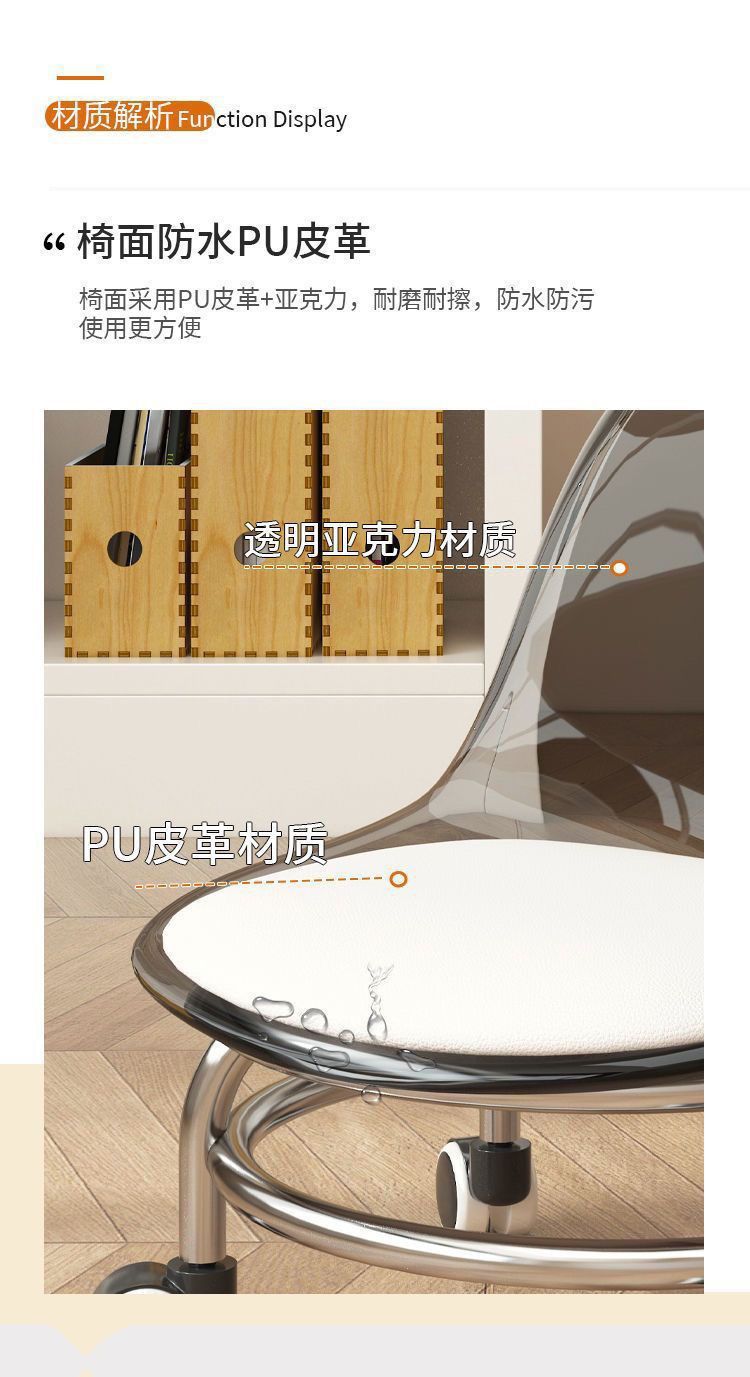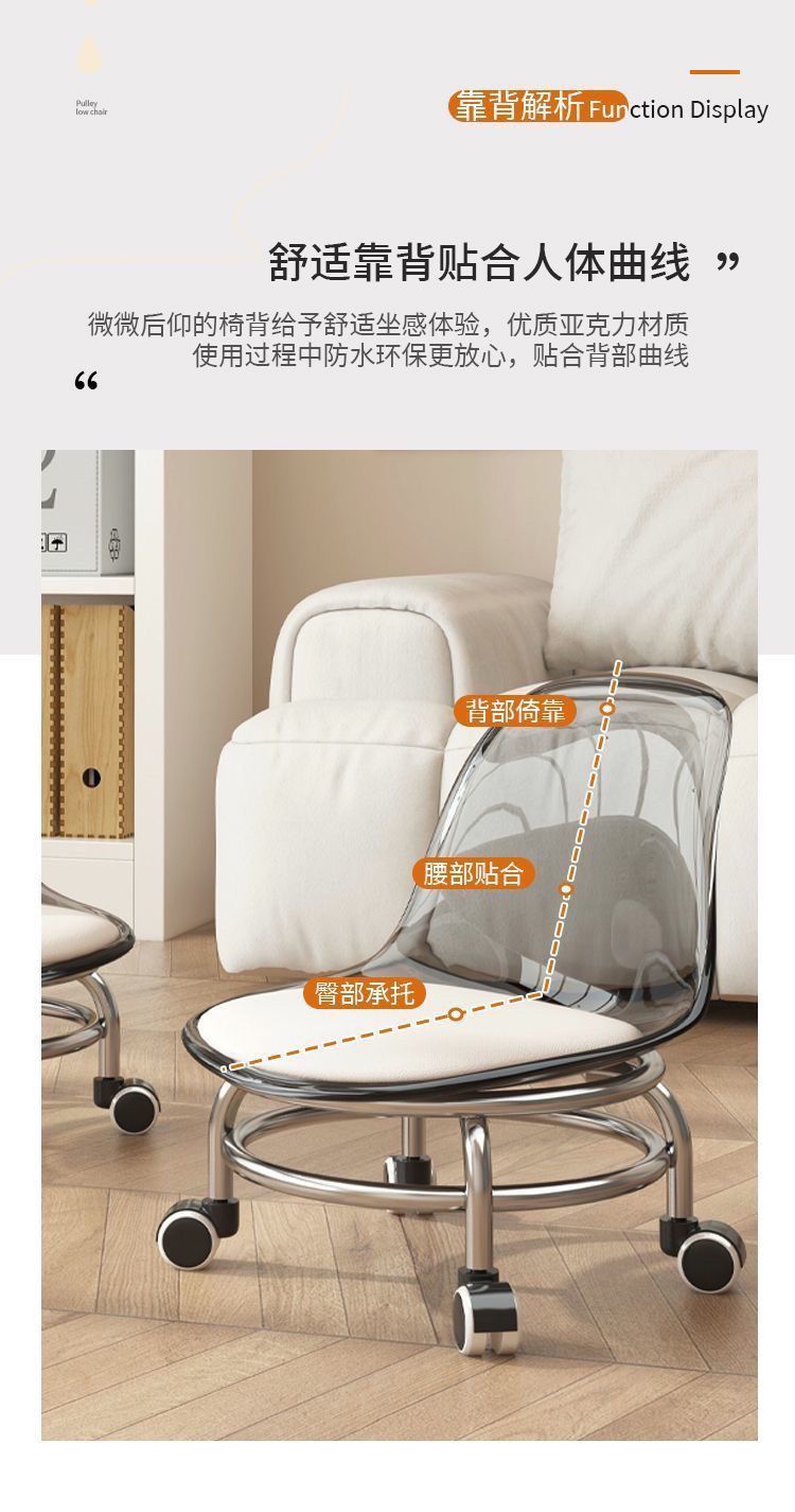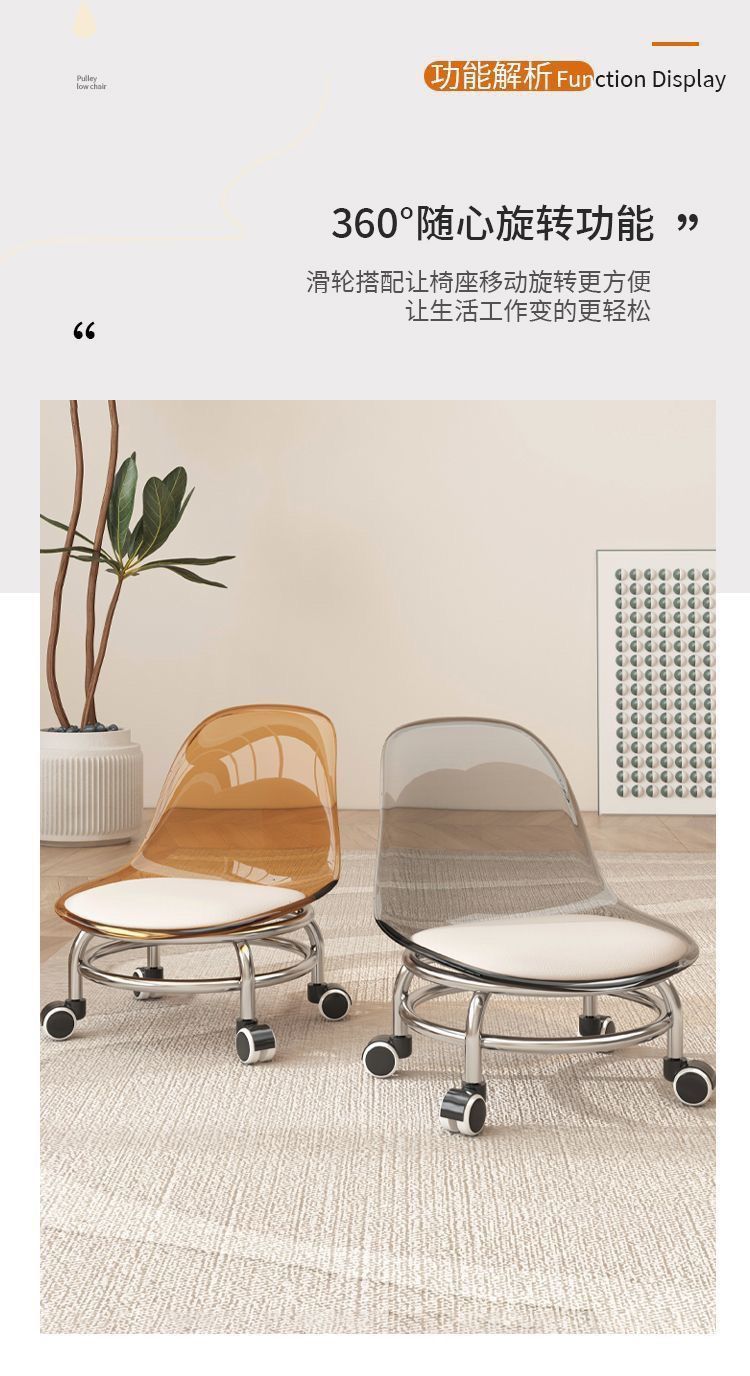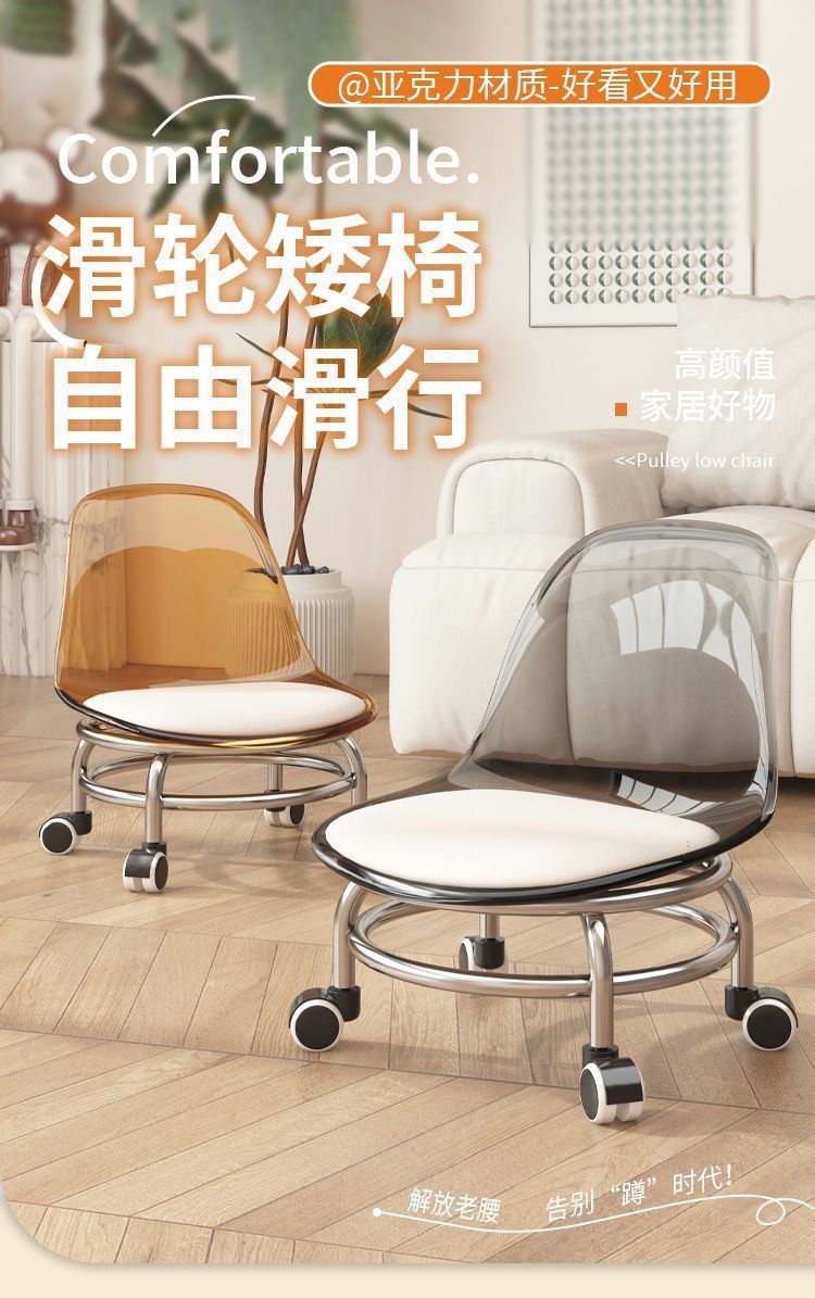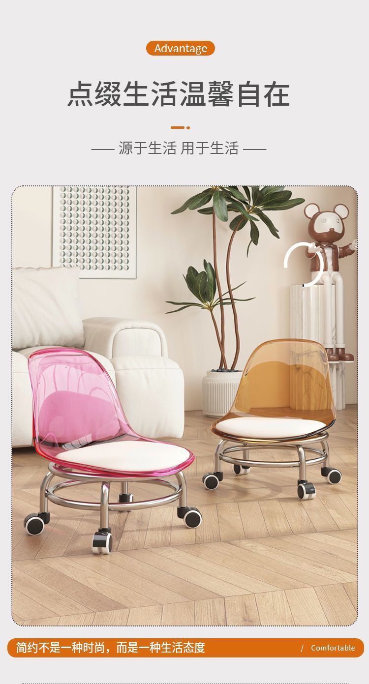 Экспортный завод акриловой мебели: домашний табурет со спинкой на колесах, прозрачный маленький стул, табурет на колесах, стул для малышей