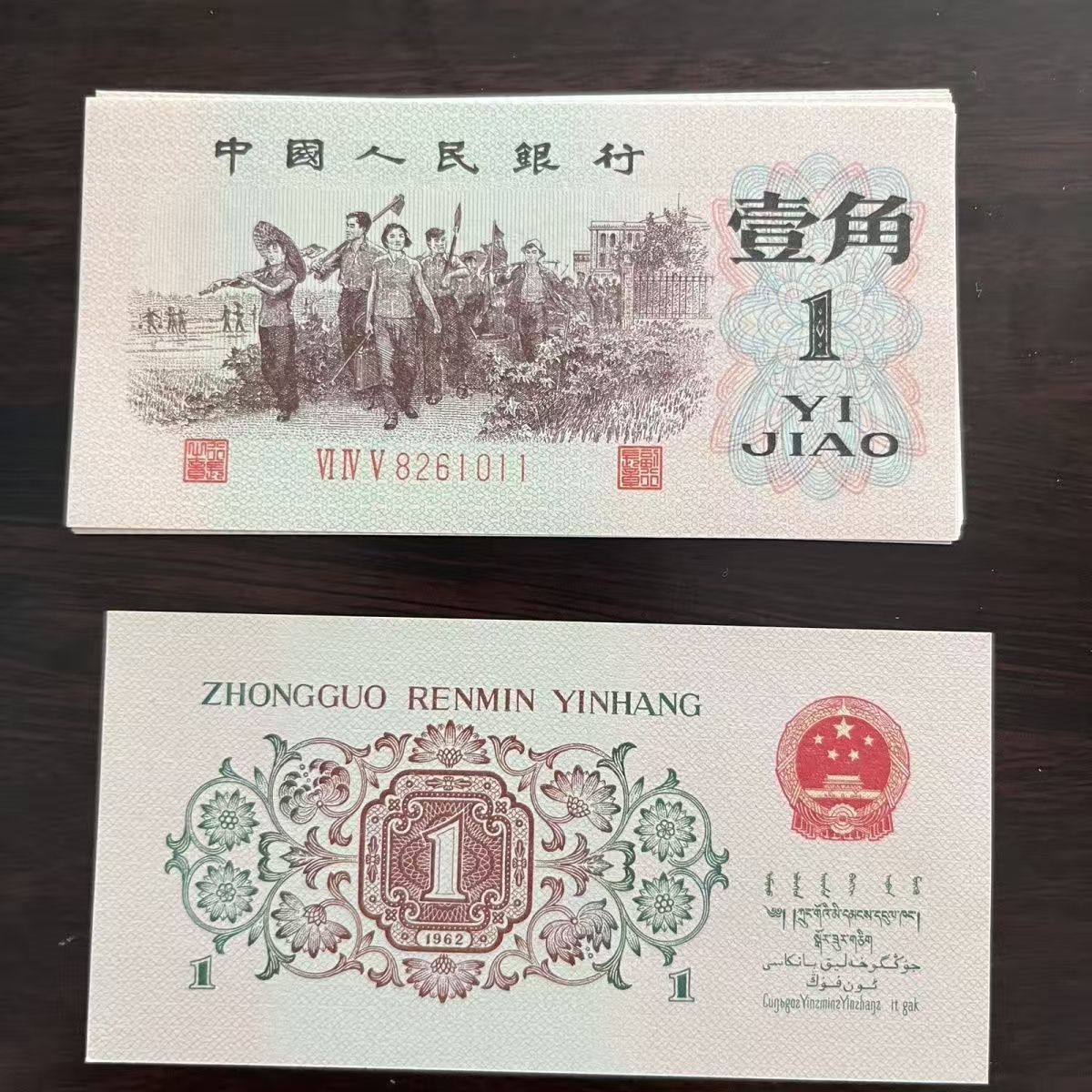 Старая версия третьего набора банкнот RMB, зеленая однопенсовая банкнота, 100 последовательных серийных номеров