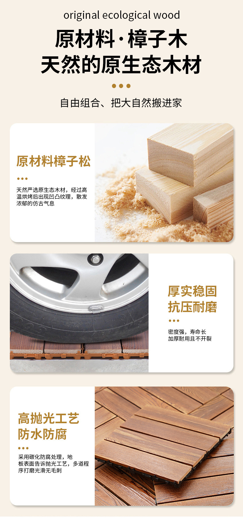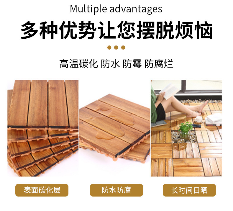 Массивное деревянное покрытие для балкона, наружный ремонт, настил, сплошной пол, нескользящий, карбонизированное антикоррозийное деревянное покрытие