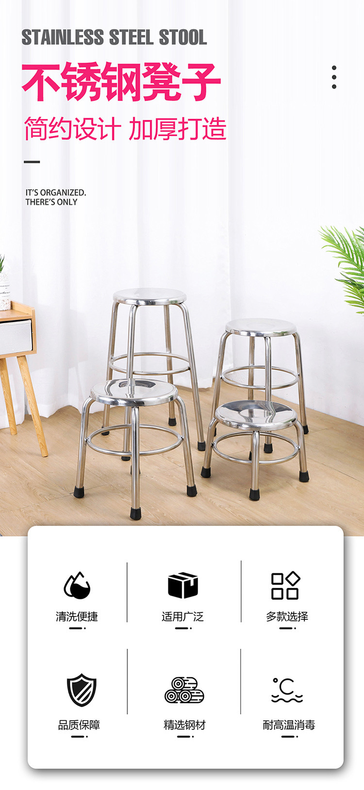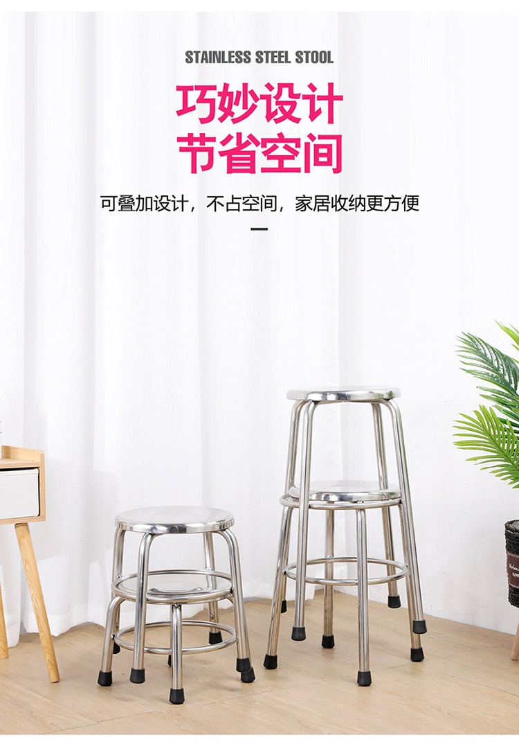 Кросс-бордерный коммерческий круглой стул из нержавеющей стали, низкий стул, столовая, ресторан, обеденный стул, высокий барный стул для сборочного цеха