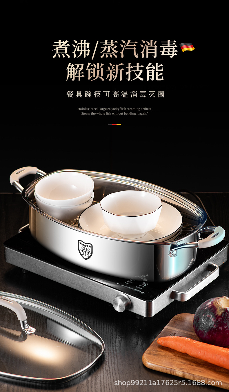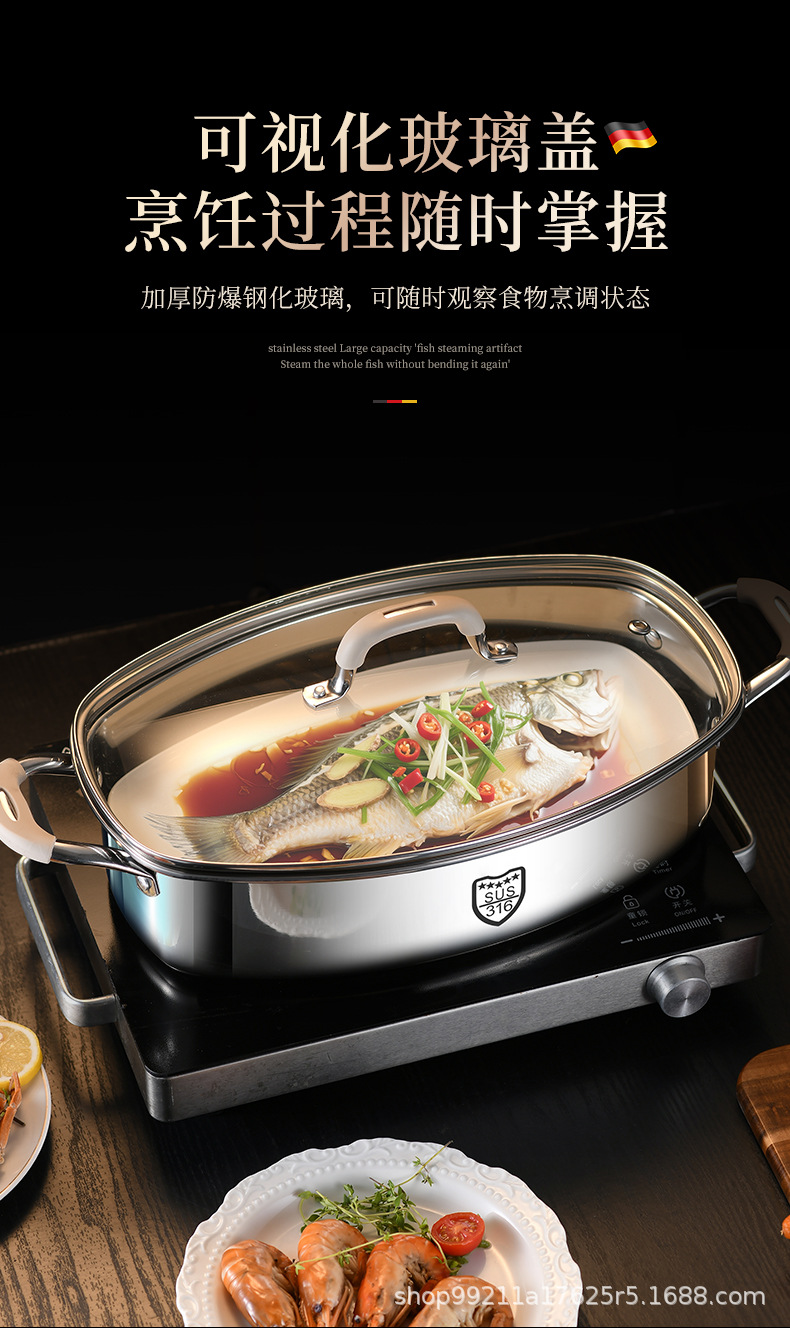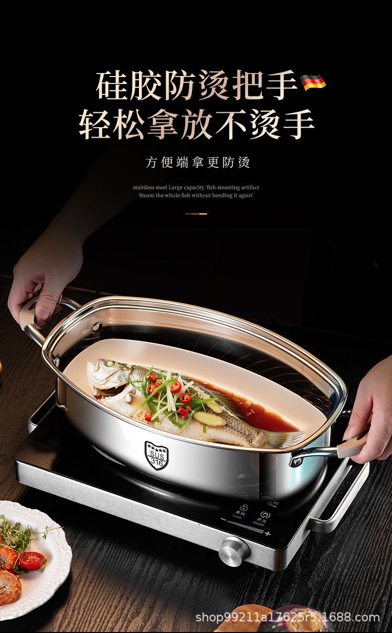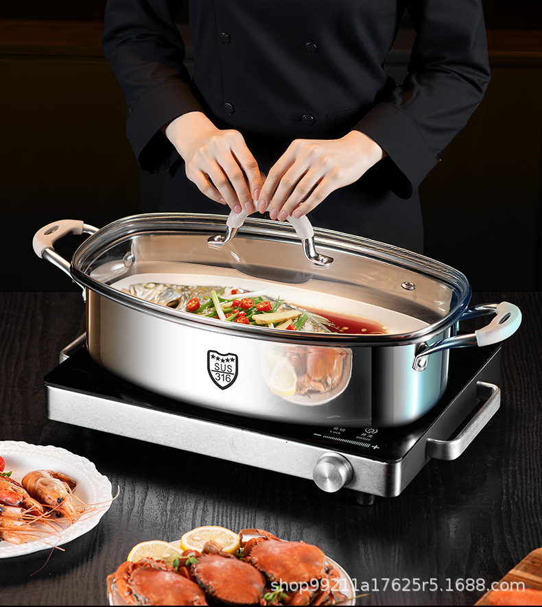 Кастрюля для приготовления рыбы, артефакт для дома, из нержавеющей стали 316, большая ёмкость, овальная кастрюля для рыбы, для газовой плиты и индукции