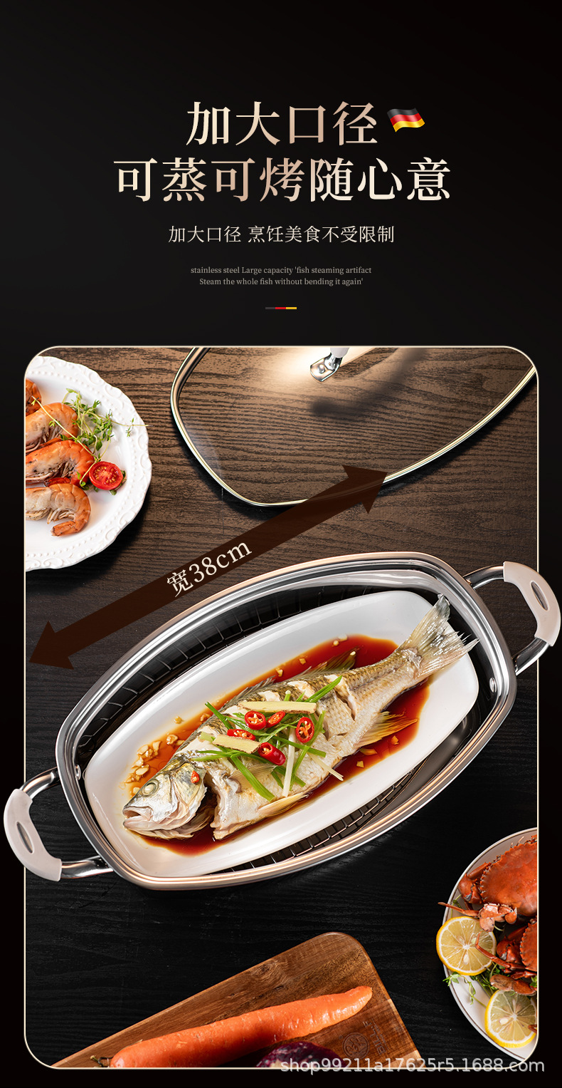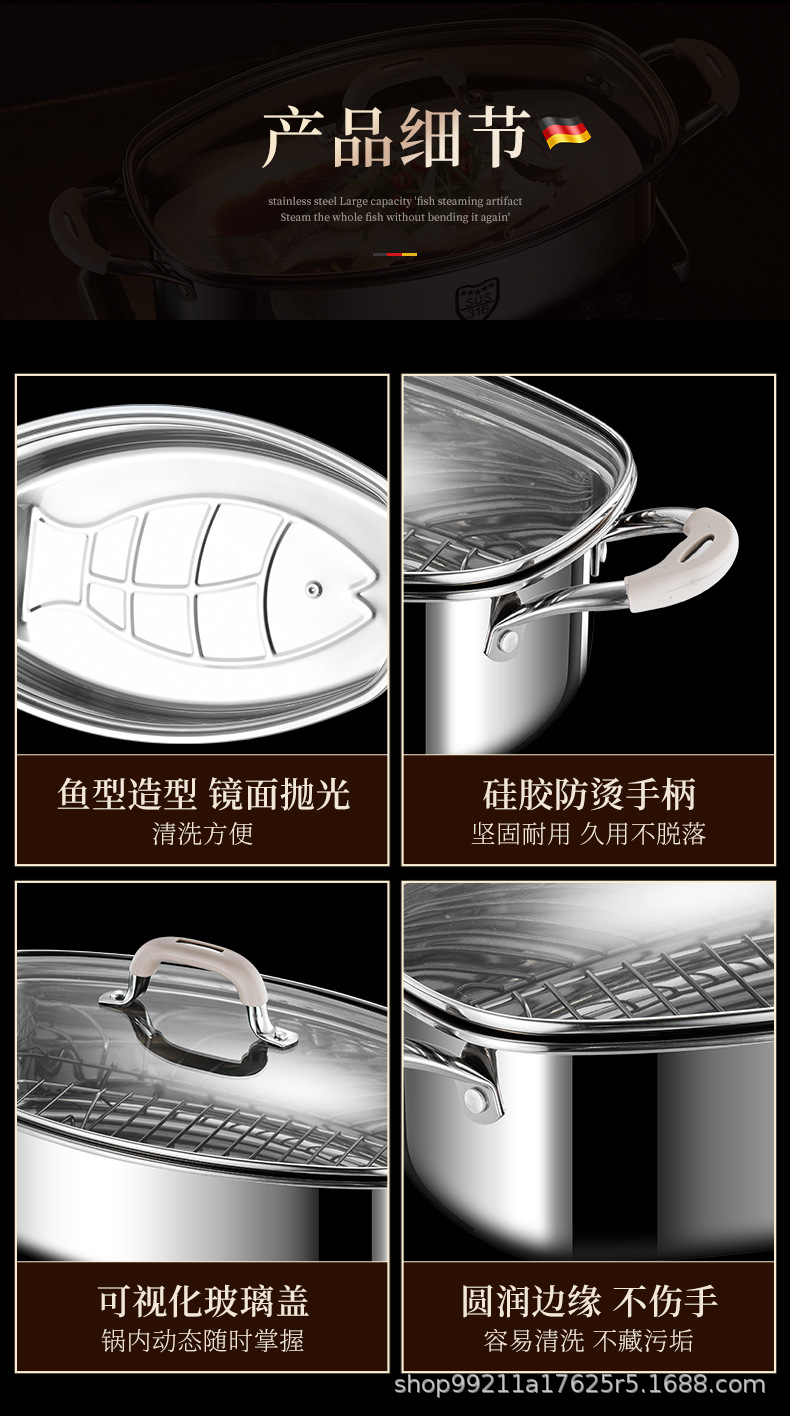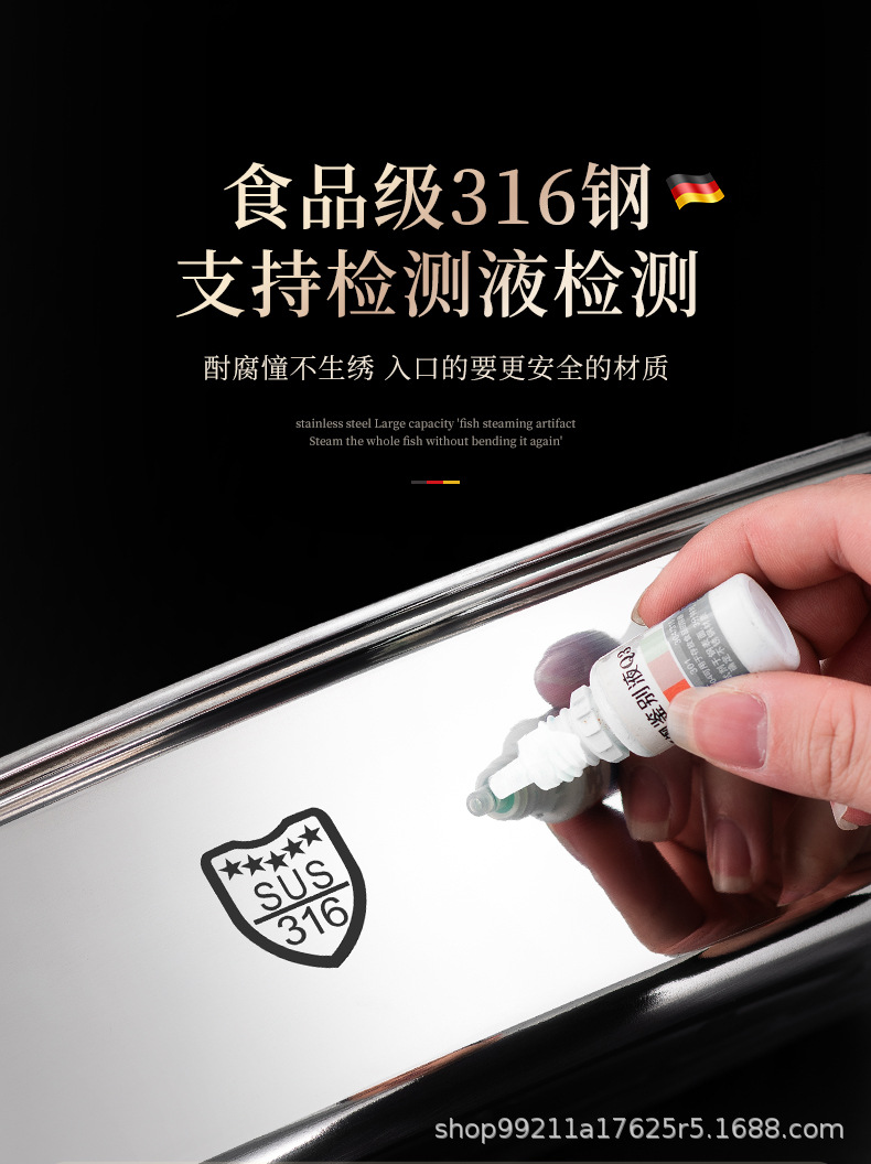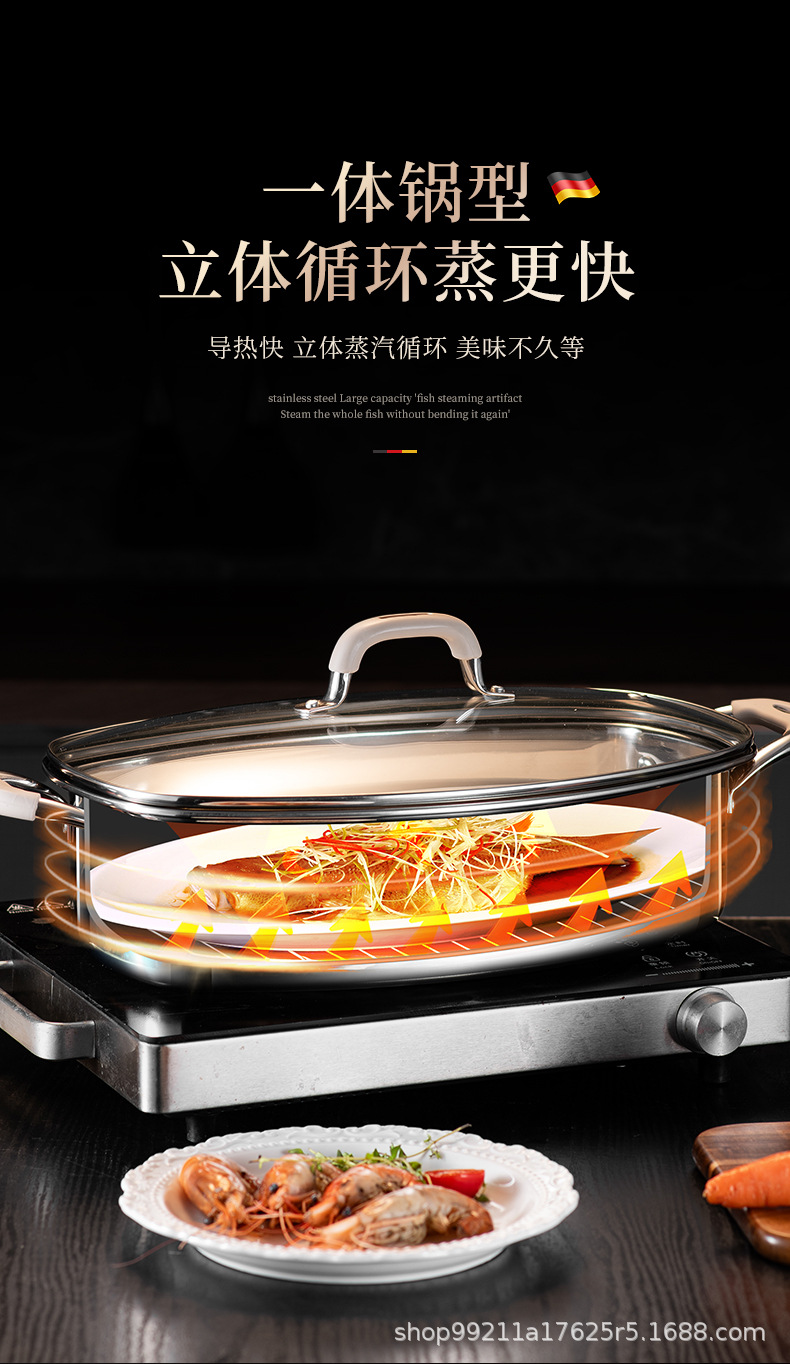 Кастрюля для приготовления рыбы, артефакт для дома, из нержавеющей стали 316, большая ёмкость, овальная кастрюля для рыбы, для газовой плиты и индукции