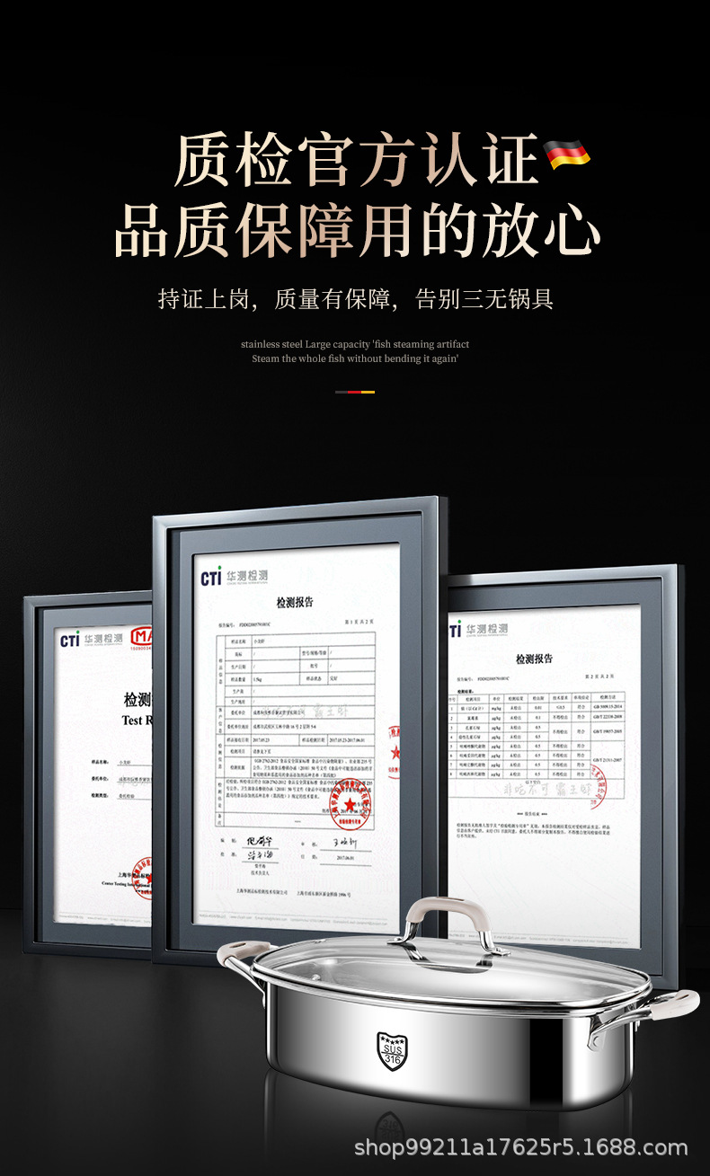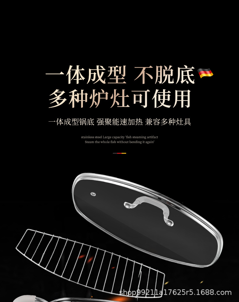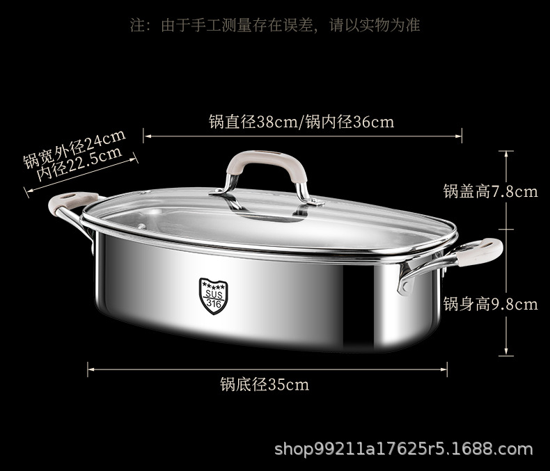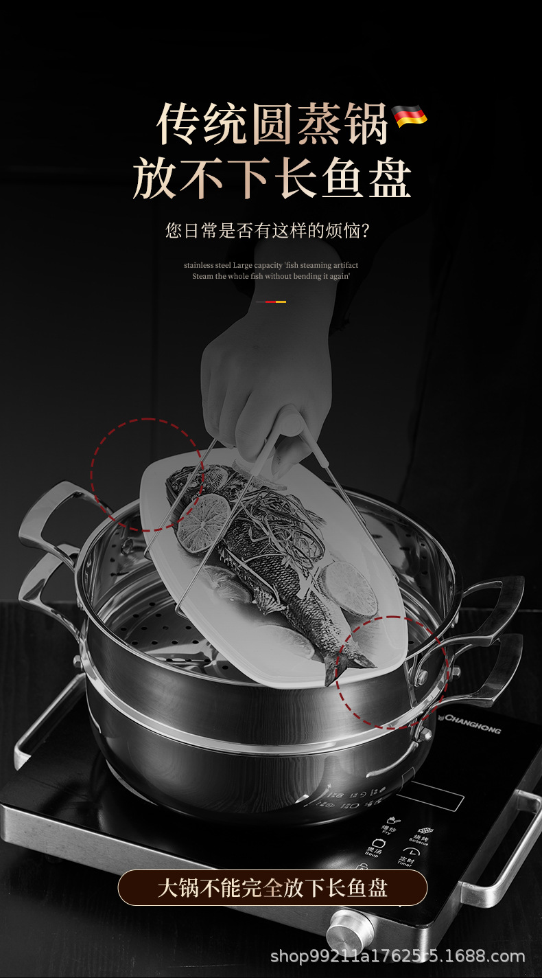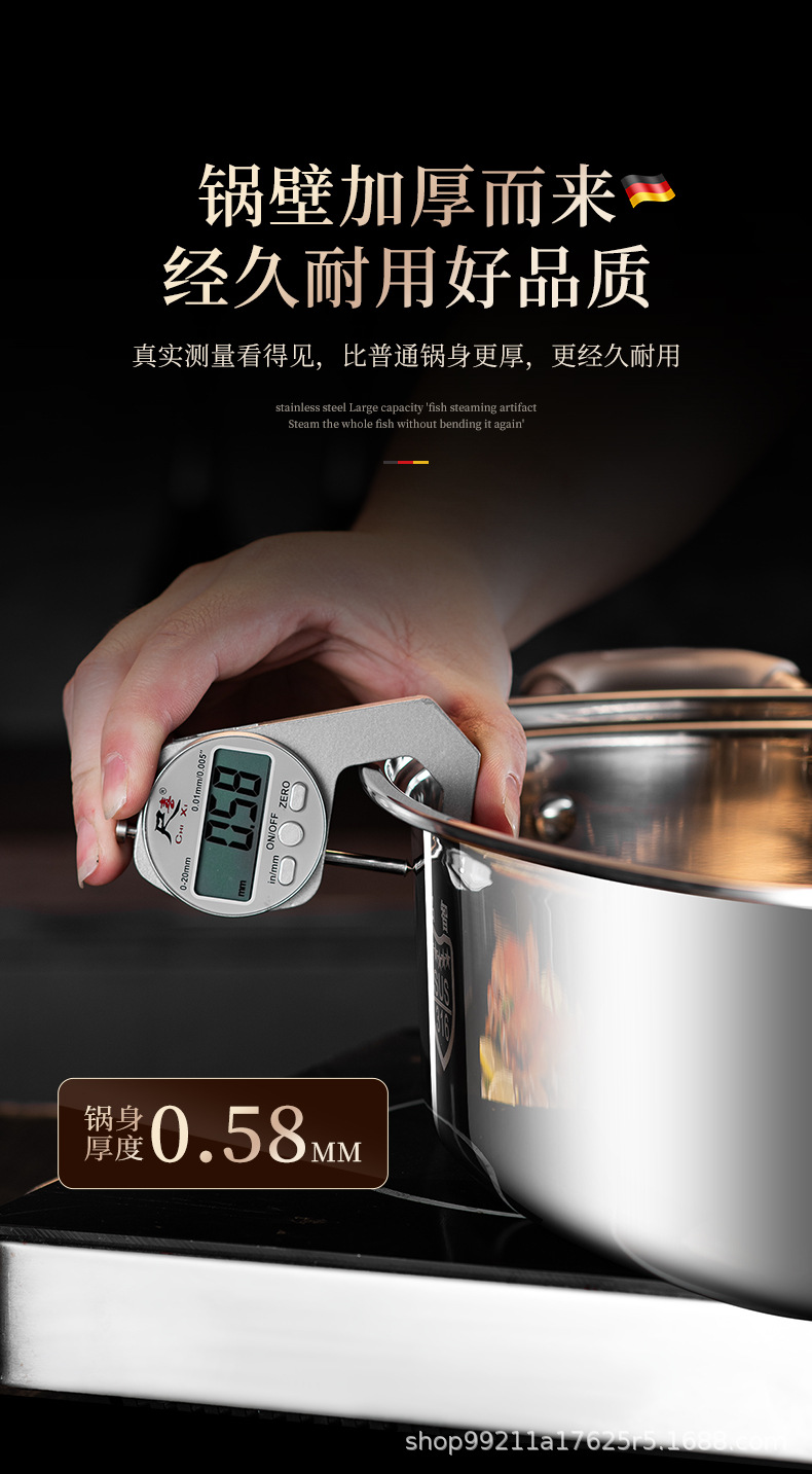 Кастрюля для приготовления рыбы, артефакт для дома, из нержавеющей стали 316, большая ёмкость, овальная кастрюля для рыбы, для газовой плиты и индукции
