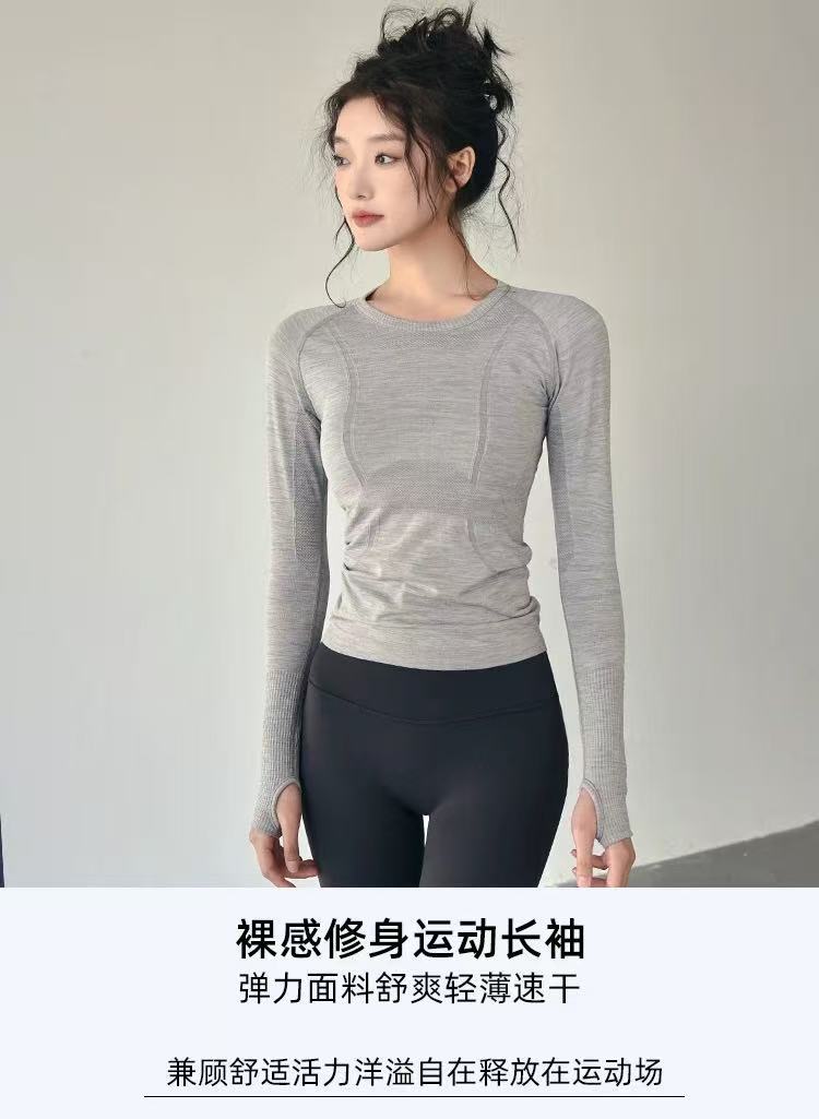 Спортивные топы для женщин осень-зима 2025, облегающий круглый вырез, быстросохнущие, бесшовные йога-одежда, для бега, фитнеса с длинными рукавами