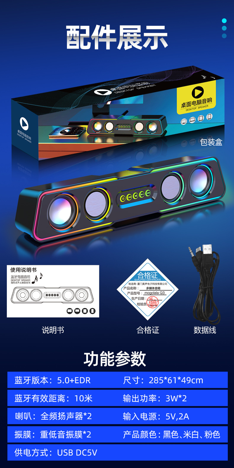 Компьютерная мини-колонка Q3 Bluetooth, двухрежимная, с сабвуфером, внешний, длинный стереозвук, высокая громкость