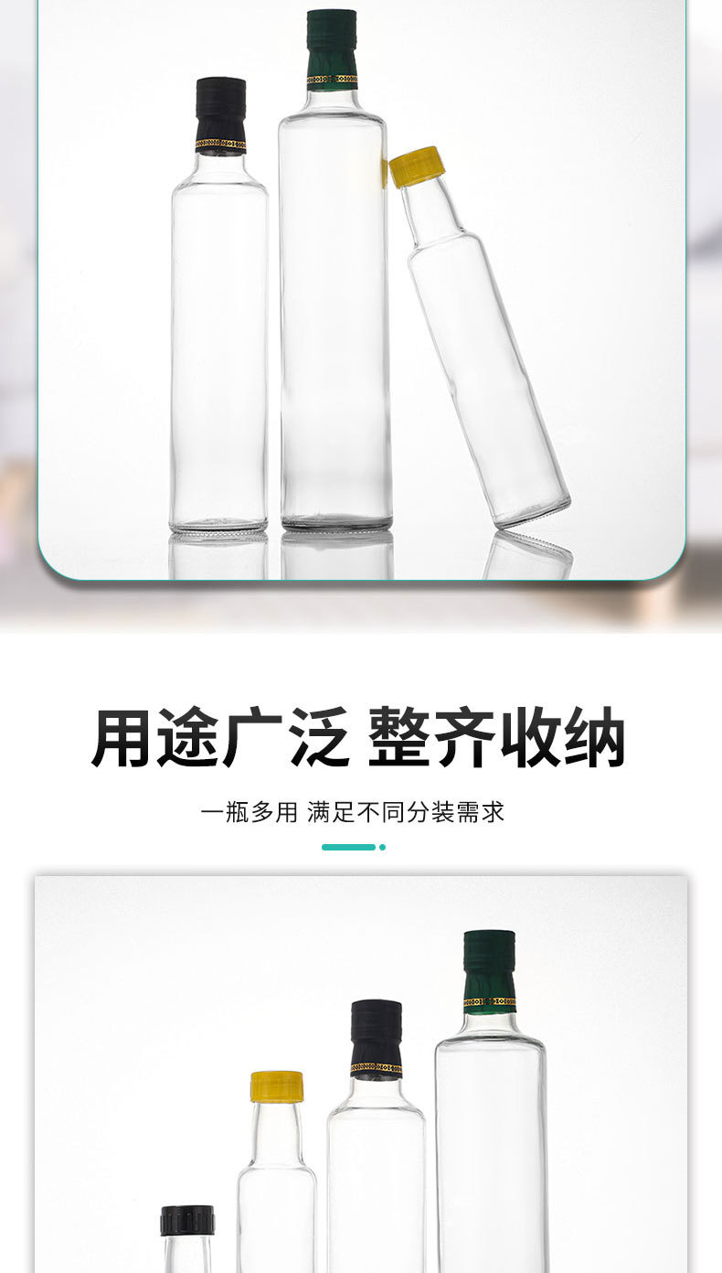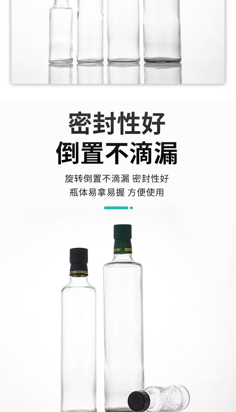 Квадратная прозрачная бутылка для оливкового масла, круглая герметичная бутылка для масла камелии, стеклянная бутылка для грецкого масла, бутылка для кунжутного масла
