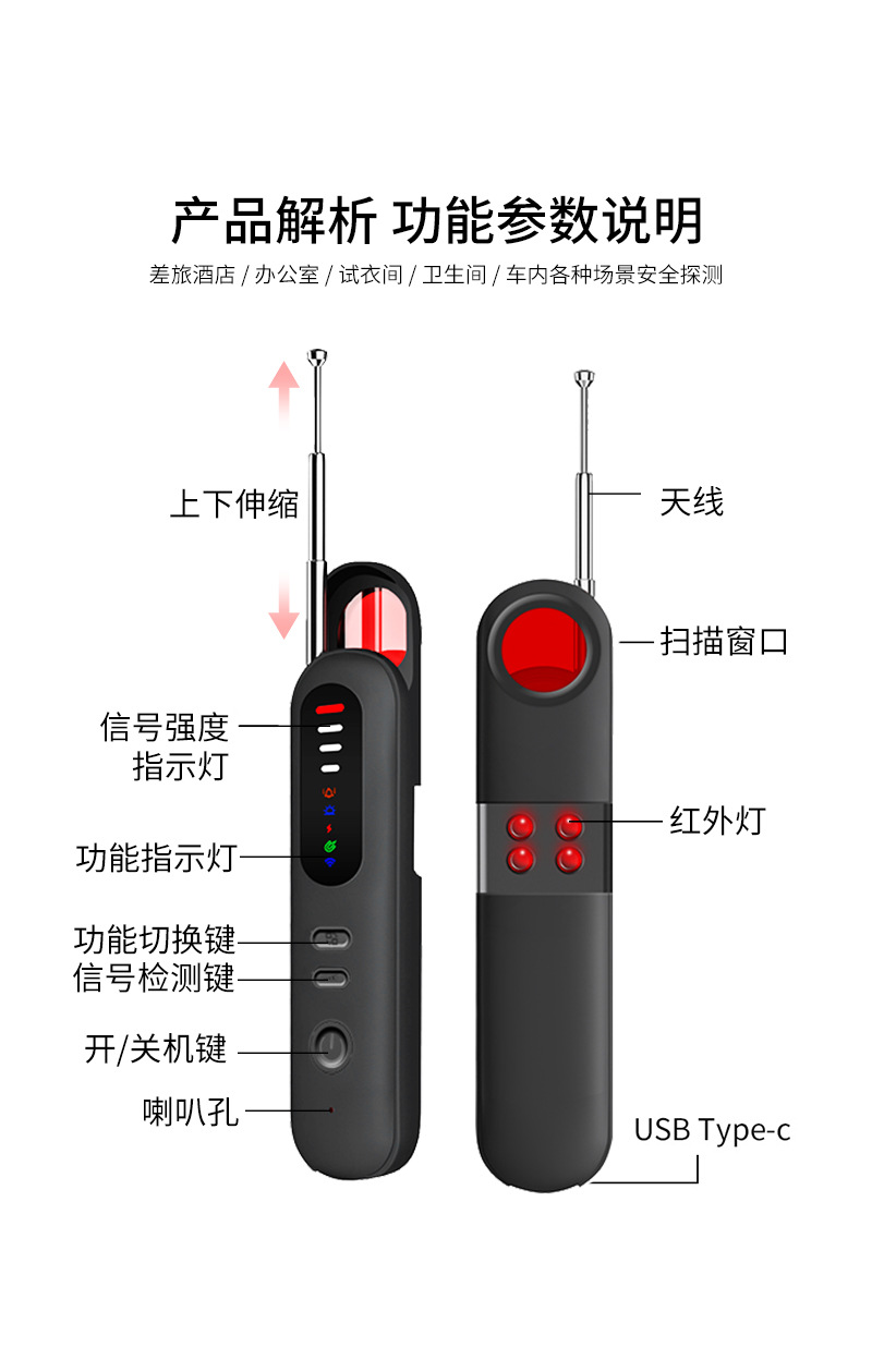 Детектор камеры T06 Инфракрасный ночной сенсор сигнализации Вибрационная сигнализация Анти-шпион Анти-наблюдение детектор