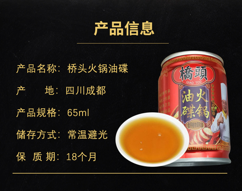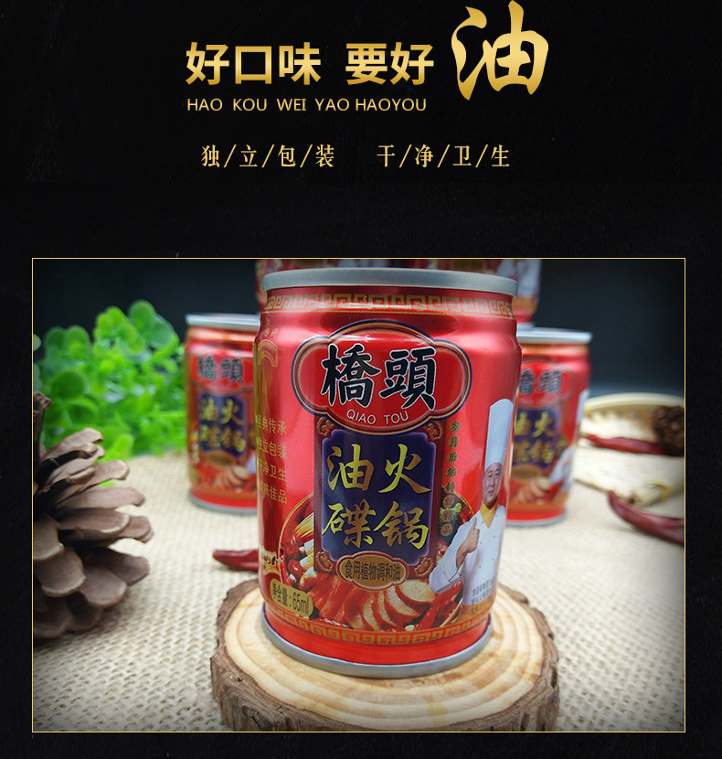 ![]() | Qiaotou hot pot oil dish 65ml (red can) * 1 can | ¥2.12 / ≈ 26 ₽ | 9423 | 6116829267937 |