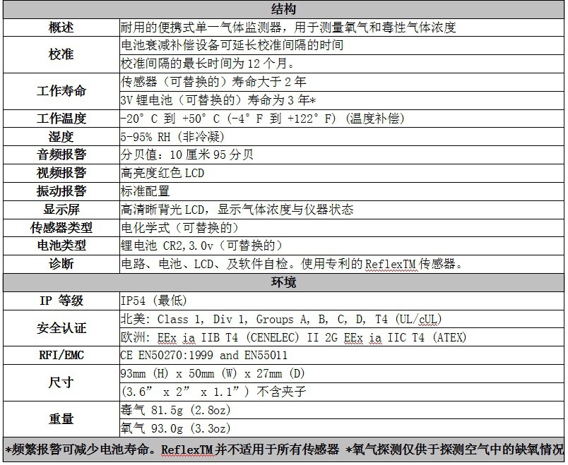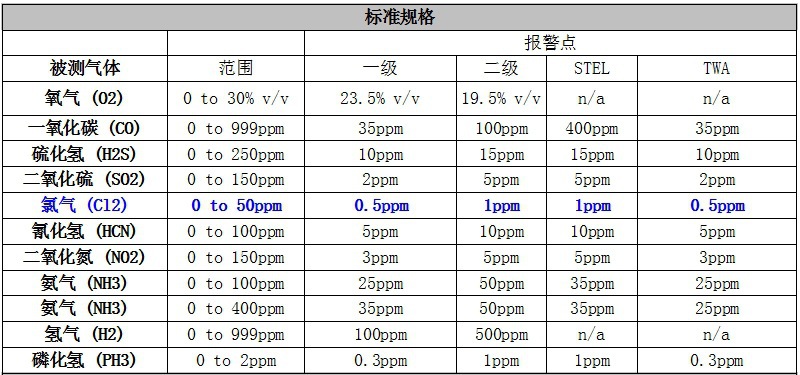 美国霍尼韦尔 Impulse XP-CL2 氯气气体检测仪 规格参数: