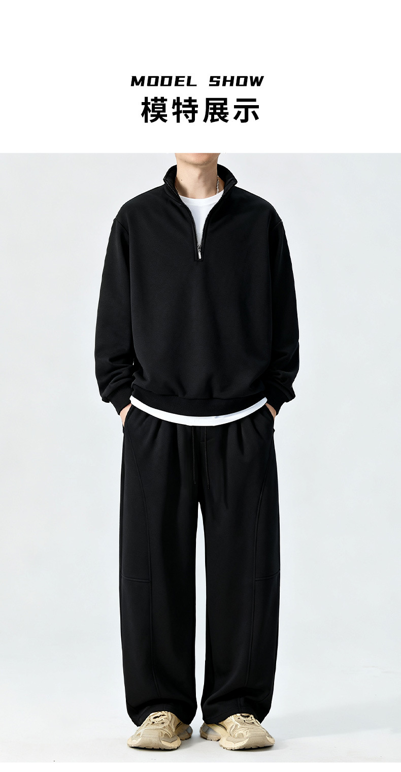 Плюс размер мужской бархатный свитшот с полузастежкой и стойкой, утепленный спортивный повседневный стиль, дропшиппинг