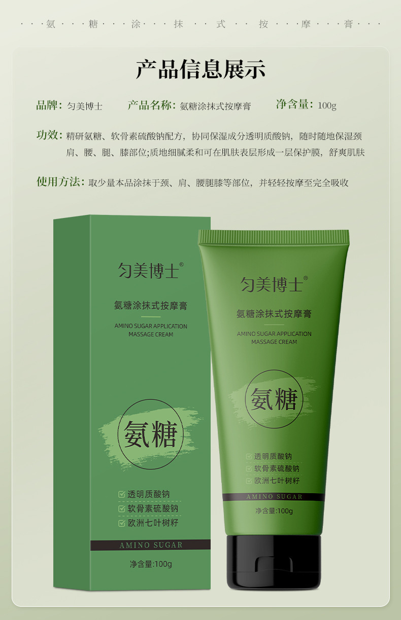 Крем для массажа с аммониевым сахаром доктора Юньмэй защищает суставы. Маленькая зеленая туба для наружного применения, аммониевый сахар с хондроитином