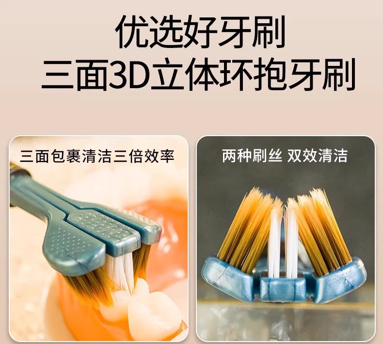 Трехсторонняя зубная щетка для взрослых, мужчин, женщин и детей, 3D зубная щетка, круглая межзубная щетка, без мертвых углов