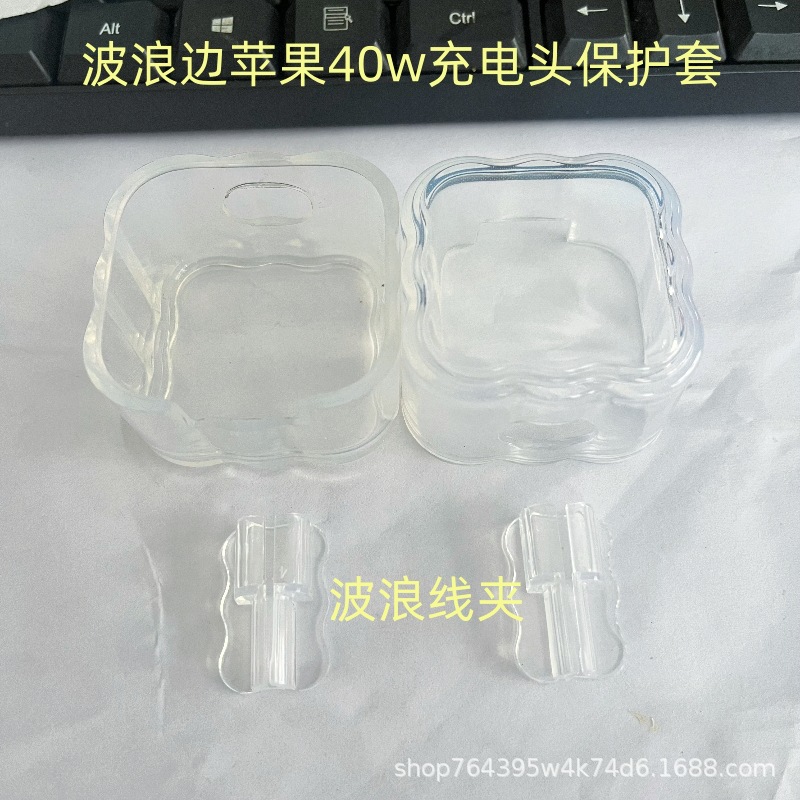 适用苹果40w充电器保护套PD40W波浪边tpu软壳防摔壳线咬线器打印