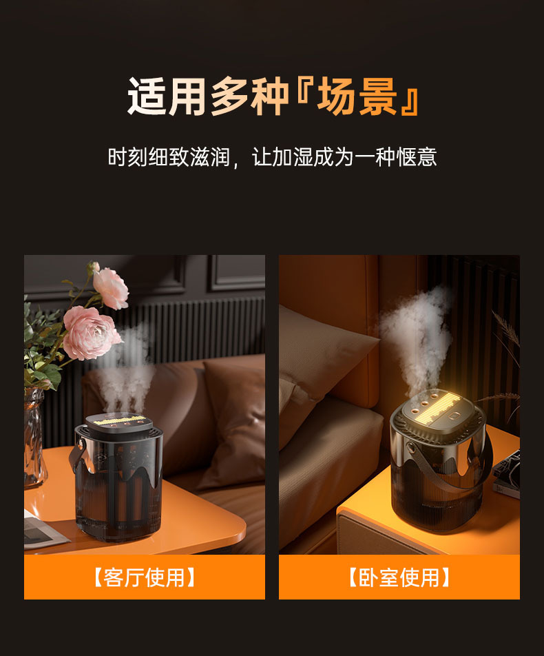 Бытовой перезаряжаемый увлажнитель большого объема для офиса с тремя распылителями и ночником