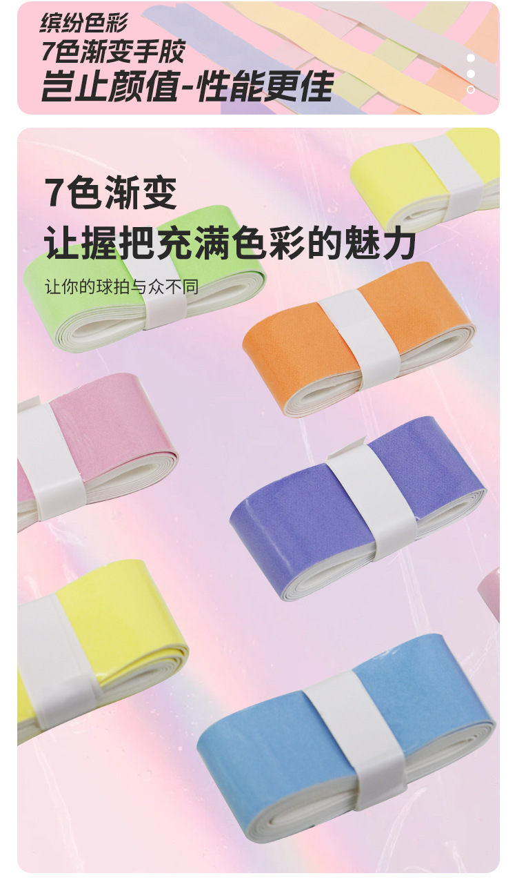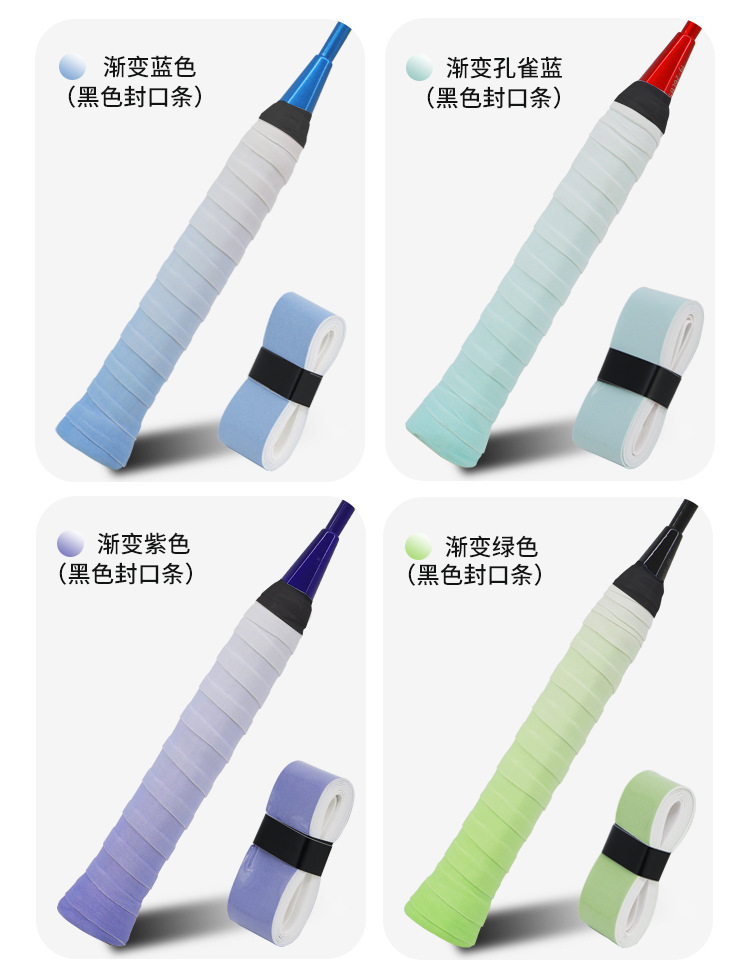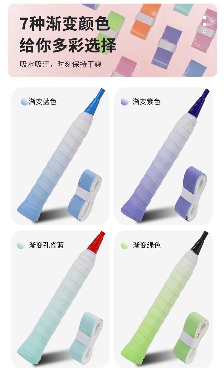 Липкая лента для ракетки по бадминтону с градиентным цветом, не скользящая, впитывающая пот, оптовая продажа