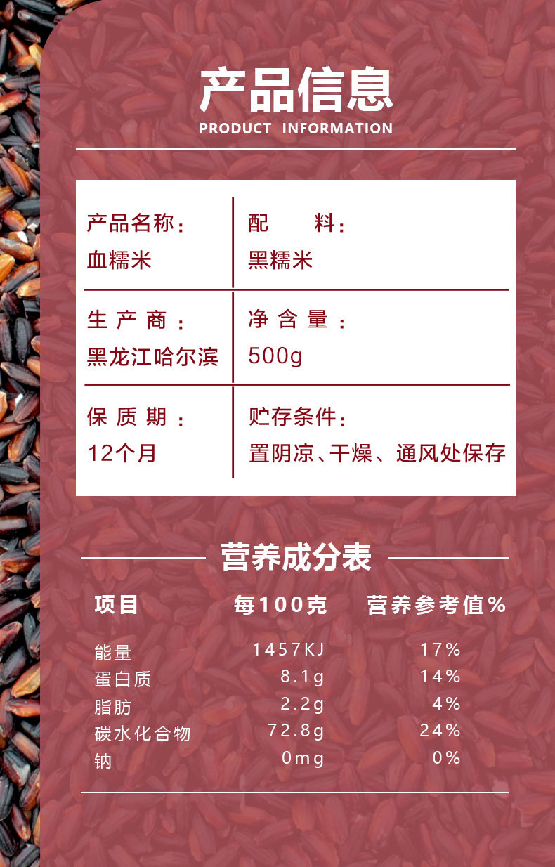 Нетто (спецификация) Blood glutinous rice 500g*1 bag