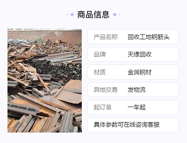 一家能处理各类生产性废旧不锈钢回收、废铜、废铁、废铝、电线电缆、二手废钢回收等的公司, 本公司拥有各种大型机械设备工具,其中包括废铁板剪板机、打包机、叉车、航吊、专业氧割,大型爪机、钢筋切粒机等设备工具。