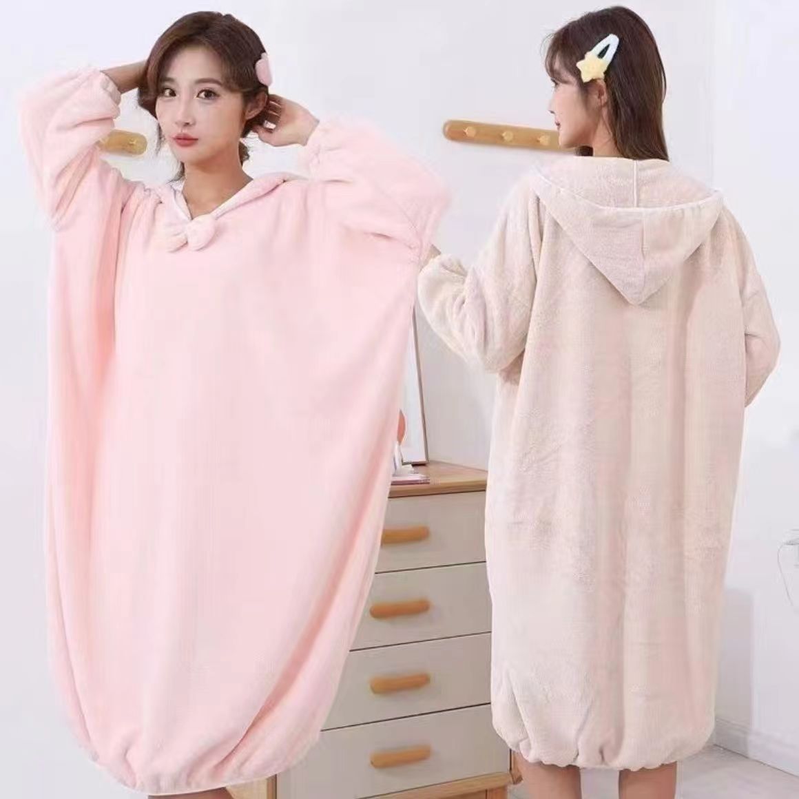 Длинная домашняя юбка для женщин, впитывающее и утолщенное полотенце для ванной, капюшон из кораллового велюра, длинные рукава, домашняя юбка для ванной и халат