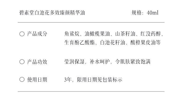 ![]() | Bisutang white pond flower multi-effect beauty essence oil | ¥6.4 / ≈ 78 ₽ | 99905 | 6114610023792 |