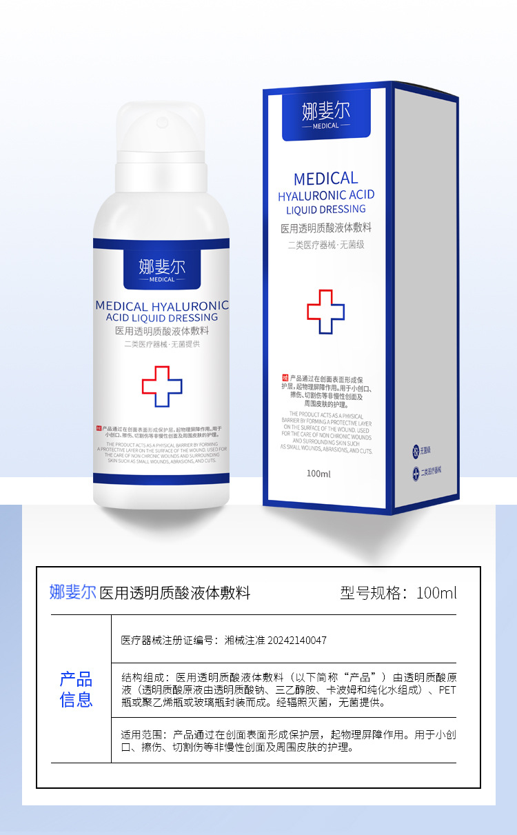 Медицинская жидкая повязка с натриевым гиалуронатом для послеоперационного восстановления, увлажняющий и освежающий спрей, оптовая продажа